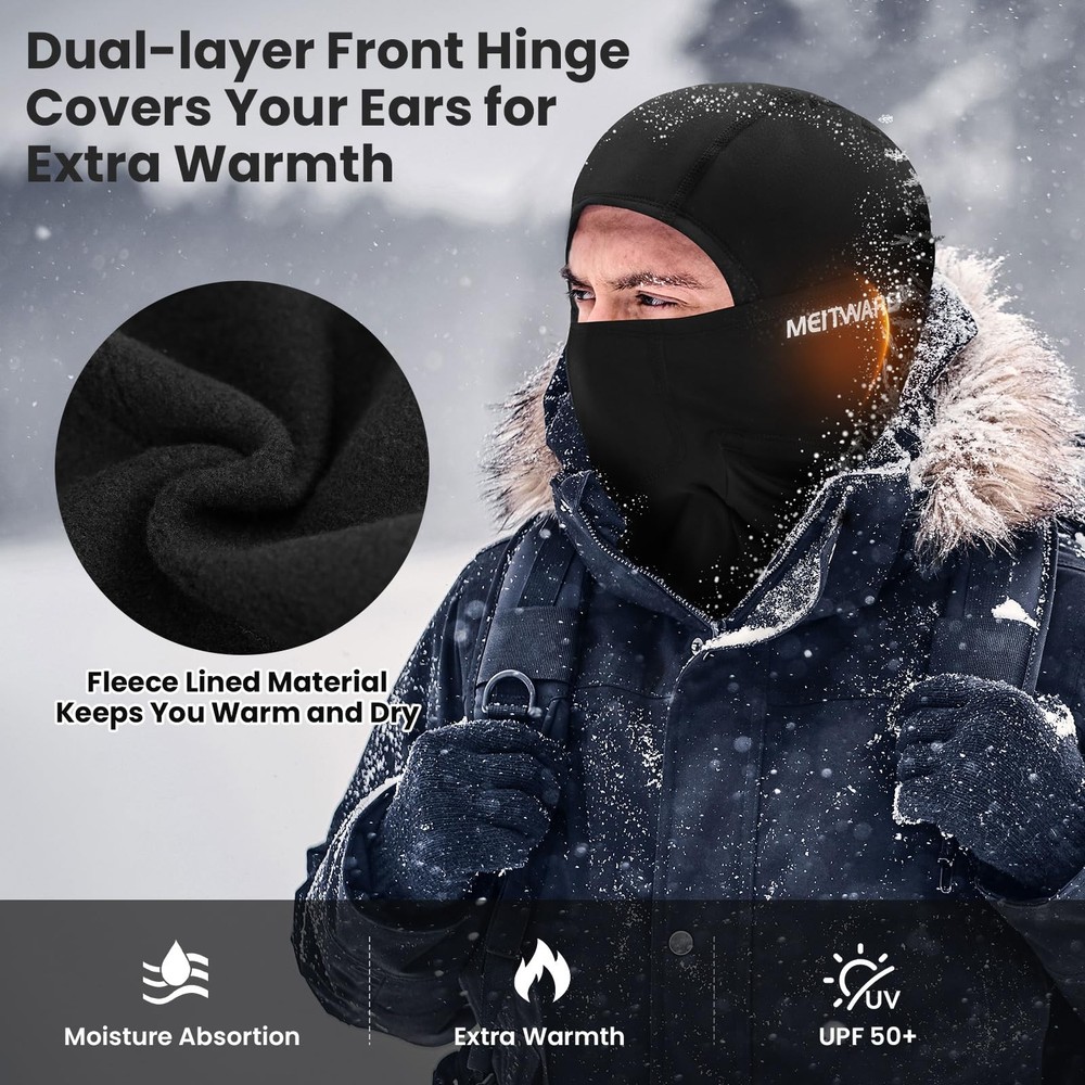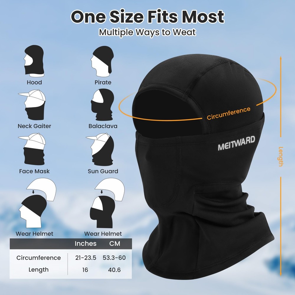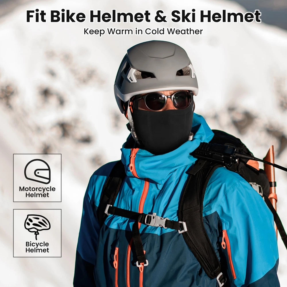 WARM & COMFORTABLE - Ski Mask balaclava is fleece lined inside with a long-contoured neckline to keep you warm in extreme conditions. Dual-layer front hinge covers ear to ear, ensuring your face and ears stay warm and protected. PROTECTION FROM WIND, COLD & DUST - Winter balaclava mask for cold weather can protect you from wind, cold, dust and UV. Even in extremely bad weather, the excellent performance of balaclava can easily hold it. VERSATILITY DESIGN - men’s balaclava contoured design is helmet-compatible, perfect for Skiing, Snow Boarding, Snowmobiling, Motorcycling, Riding, Hunting, Construction, Warehouse Work and Shoveling Snow. ELASTIC DESIGN - One size fits all! This design allows you to wear the balaclava in multiple ways for the ultimate versatility. This 4-way stretch fabric offers a snug, comfortable fit that will not restrict movement during outdoor activities. BREATHABLE FABRIC - We use breathable, moisture wicking polyester-elastane material to draw out moisture and dry quickly to help keep you warm. The soft, comfortable and lightweight material also delivers maximum breathability during strenuous activities.