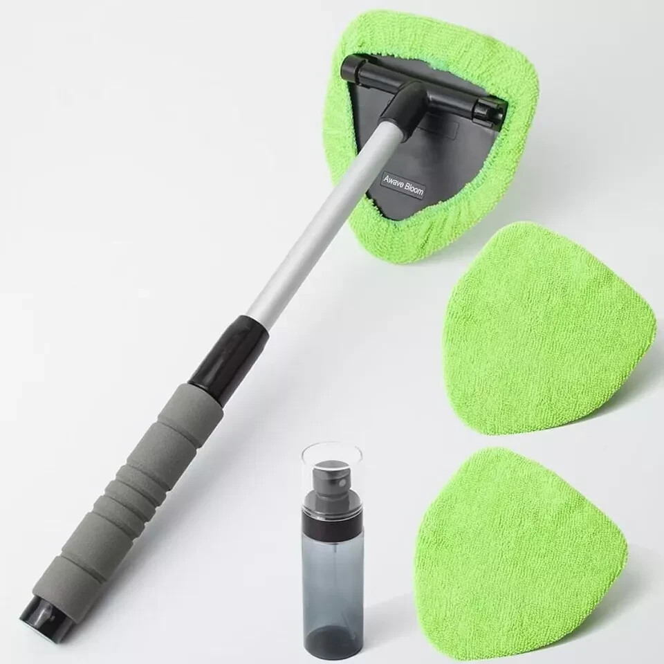 Compact& Easy storage This product is very compact for easy storage in the seatback pocket, and the handle extends to be able to reach the furthest parts of the windshield interior from the driver's seat. you can Storage in your glove box. you will like it that it does save you less shoulder pain using it as opposed to attempting to clean the windshield without it . Sturdy and Easy to handle:It is sturdy and easy to handle, could use adjustable handle. The best way to clean your windshield. No more streaks when cleaning the inside of the car window. The shape is just right to clean the corners of the windshield inside the car. It reaches easily across the windshield of the car, too. Great value and useful tool:This set comes with 3 microfiber cloth covers ,a small spray bottle. The pads are easy to put on and off. The handle is easy to telescope and it gets all the way down the windshield with minimal effort. extra covers so you can use, wash, and reuse. Easy to use:Spray a little cleaner on the pad and run over the interior windshield. It gets into hard-to-reach places and edges. 1 minute and your windshield is crystal clear. you can keep it between the seats in the front of the car and use it every week when there is a little moisture on the window. No more hazy glare through your windows! This wand is great. Just put a windshield washer fluid tablet into the wiper can, then fill it with water, or first dissolve it with a small container, then pour the dissolved windshield wiper fluid into the wiper jar and fill it with water, this will dissolve faster and more thoroughly. Features: extend the support rod,twist it 3X Thicker Car Windshield Cleaning Microfiber-Gven windshield cleaner comes with highly effective soft microfiber which is 3 times thicker and more absorbent than those ordinary fabrics. No Streaks Left! Aluminum Handle- Aluminum windshield cleaner handle will not break and non-slip sponge make your hand comfort even under great pressure. Extendable feature helps get the hard-to-reach area and no more hurts your back. Pivoting& Rotating Head-helps to provide better leverage and full contact to all surfaces to remove troublesome gunk in the corner of windshield, ideal for interior & exterior cleaning. Multiple Uses- Besides for car windshield cleaner, three pieces of removable fiber towels& 1 spray bottle are suitable for kitchens, bathrooms, furniture, mirrors, ceramic, shower stalls and other household window clean! Gift Choice- The car window cleaner packed well as gift choice for car lovers. For better experience, please read the instruction on package before using!