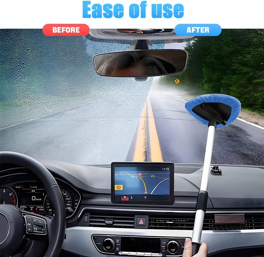 Windshield Cleaning Tool, Car Window Cleaner with Extendable Long Handle and 4 W
