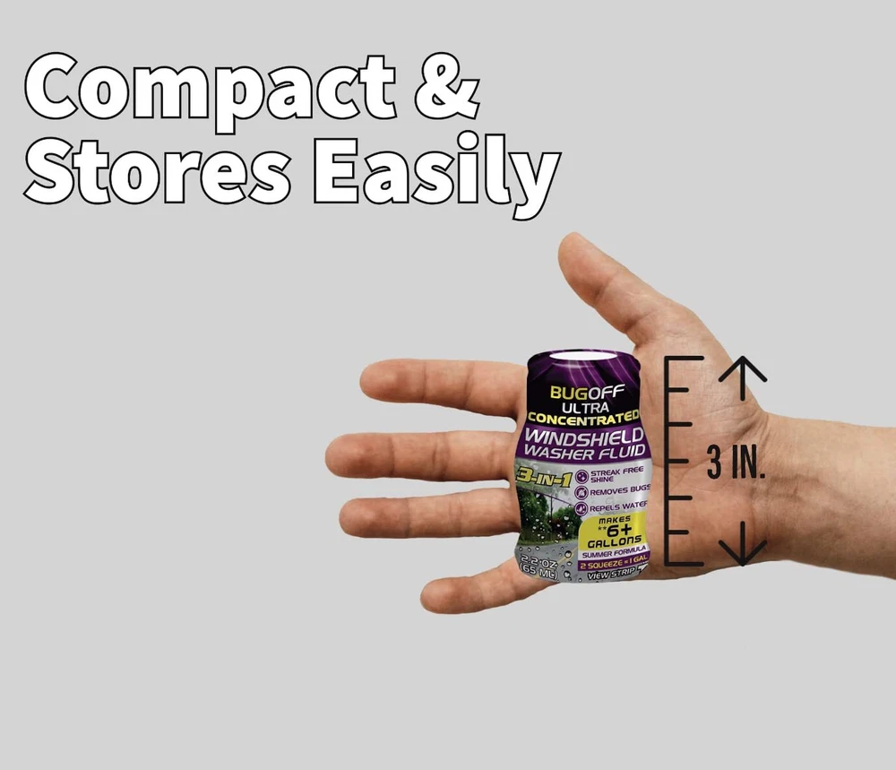 Ultra Concentrated Windshield Washer Fluid is an Ultra Concentrated product that offers a powerful 3 in 1 Windshield Fluid that quickly cleans to a Streak Free Shine, Cleans off Bug Grime and Dirt adds Water Beading properties. Great for Autos, Trucks and RV's. Environmentally friendly, consuming less landfill waste than traditional gallon products. Made in USA. Save more. Makes 6 Gallons - reduces landfill waste Adds Water Beading Properties Cleans off Bug Grime and Dirt to a Streak Free Shine Compact and easy to use Unit count type: Fl Oz