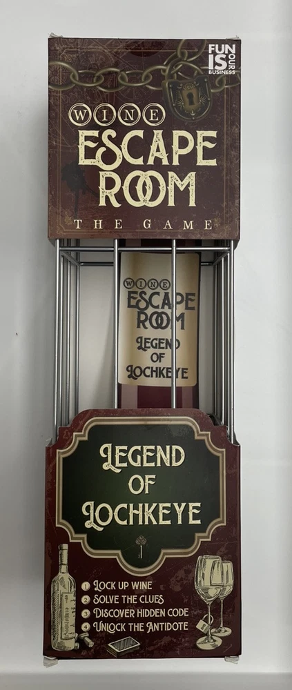 This is a Wine Escape Room Game by Boxer Gifts, designed for adults. It comes in a black color and weighs 1.06 pounds. The package dimensions are 15.67x4.37x4.21 inches. This unique gift includes a wine bottle puzzle box for an entertaining and unusual experience. The box is able to be opened from the bottom, but nothing has ever been removed . The plastic seal on the cards and lock is still attached. The item is very clean and smoke-free. There may be some light imperfections to the outer box. Please check the pictures carefully in order to better assess the condition of the box. I am willing to bundle deal with multiple purchases. I will provide fast and careful shipping. I will respond to all inquiries. Thank you for your time.