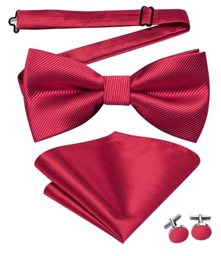 $ 8.01Bow Ties for Men Pre-Tied Pocket Square with Cufflinks Red Black Silver Plaid