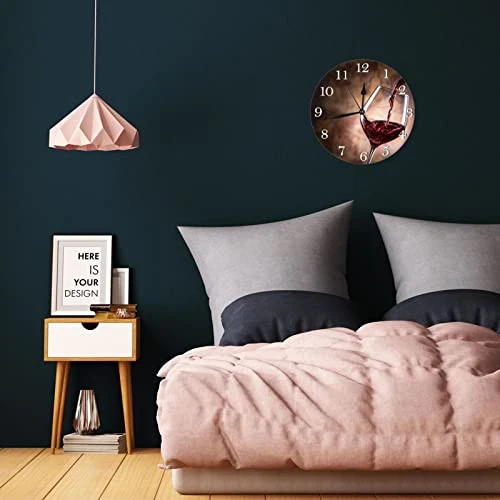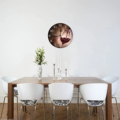 Wine Themed Wall Clock Battery Operated Silent Round Clock Wall Decor for Home