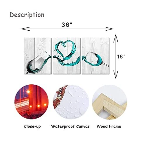 Menu 1. We require immediate payment. 2. We currently accept payment via eBay managed payments only. 3. Once payment is cleared, we will dispatch your shipment within 1-3 business days. Please refer to the "Shipping" tab for more information regarding shipping speed to your destination. Wine Wall Art 3 Piece Turquoise Kitchen Decor Wine Splash Painting Art Wall for Dining Room 16x12inch Product description Wine wall art size: 12x16inchx3pcs (30x40cmx3pcs) Teal canvas painting printed on high quality eco-solvent canvas to ensure the durability of the dining room paintings for wall decor Gallery wrapped with wooden bar inner and hooks mounted on each panels,the kitchen wall-art can be easily hang on Warm Tips: Due to different brand of monitors, actual giclee canvas print colors may be slightly different from the product image Turquoise wall art is a good idea for walls decor such as dining room and restaurant bar PLEASE MESSAGE US IF YOU HAVE ANY OTHER QUESTIONS, AND MANY THANKS FOR READING ALL OF THIS. Copyright ©#. All Rights Reserved.