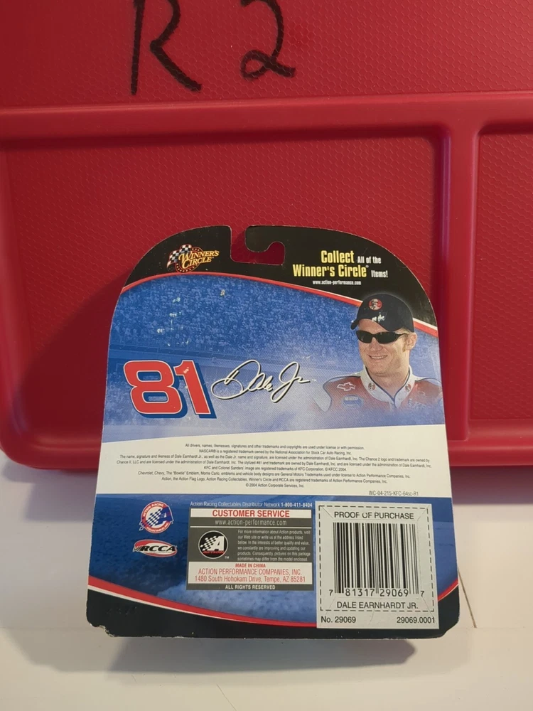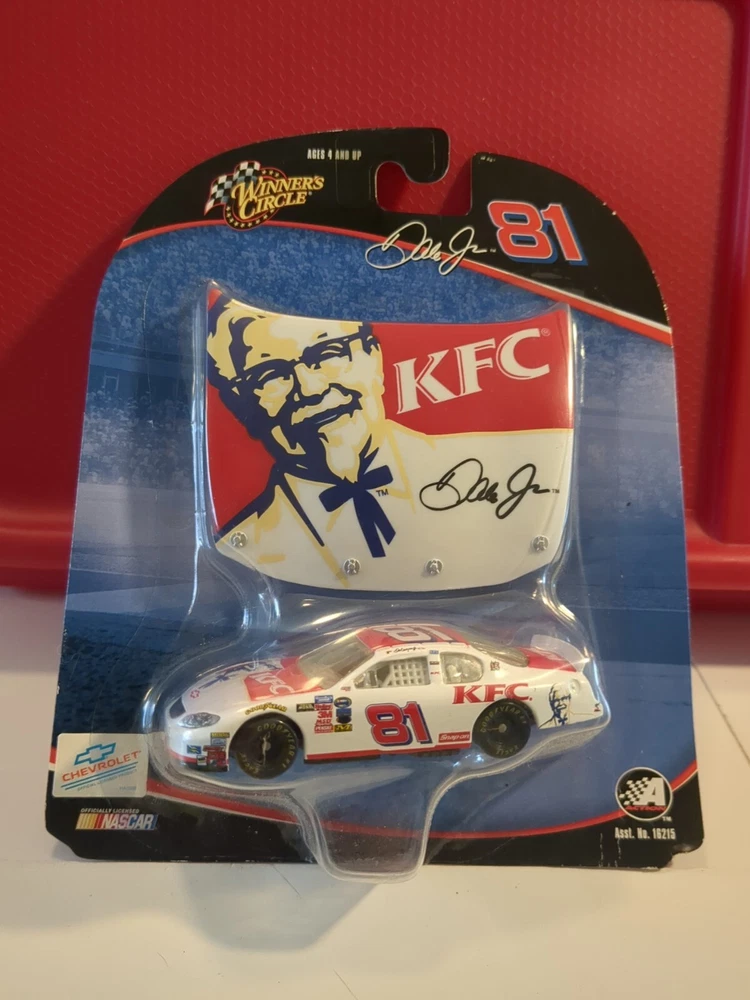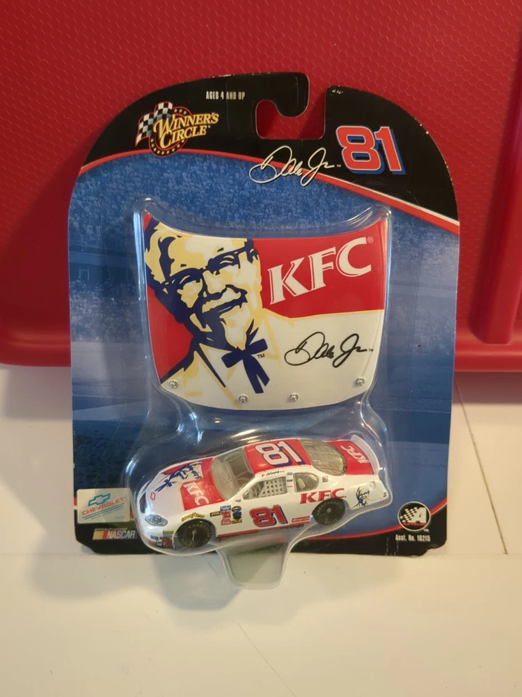 This Winners Circle diecast car is a must-have for any NASCAR fan! Featuring Dale Earnhardt Jr. in his iconic #81 KFC car, this 1:64 scale model is a perfect addition to any collection. Made with high-quality materials, this NASCAR racecar model is built to last and is perfect for display or play. With its intricate details and authentic design, this diecast car is sure to impress. From the Taco Bell racing team to the Daytona race series, this model captures the essence of NASCAR racing in 2004. Whether you're a collector or a fan of the sport, this Winners Circle Dale Earnhardt Jr. diecast car is a great addition to any collection. See pics for condition issues