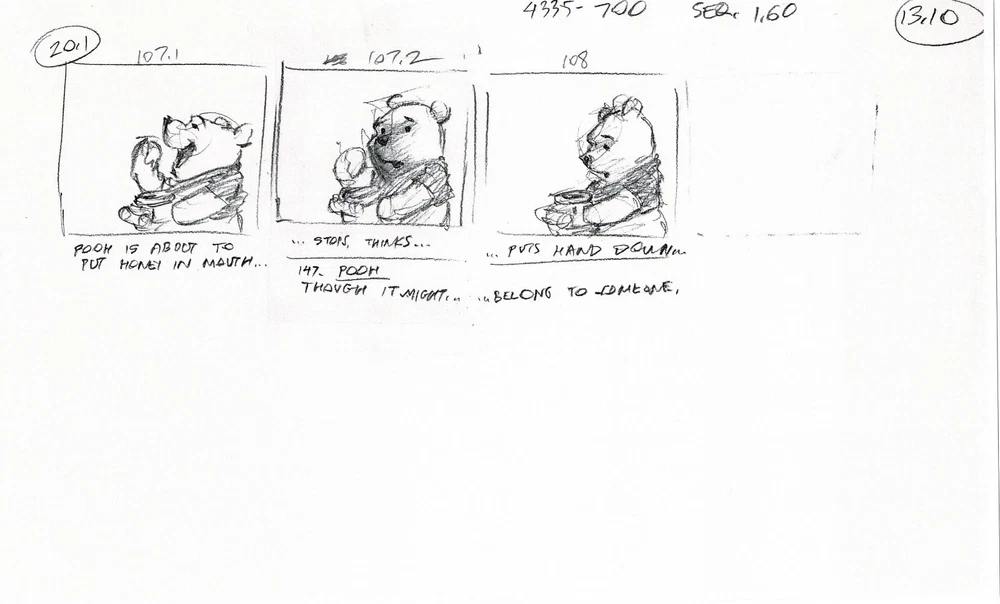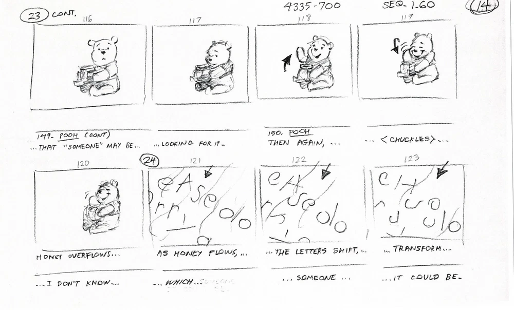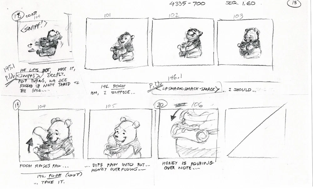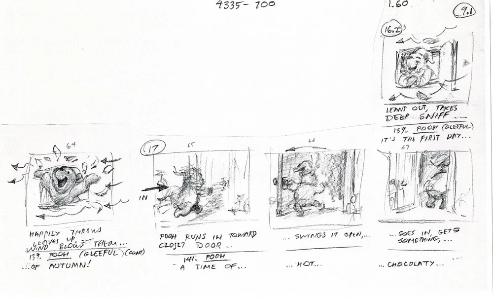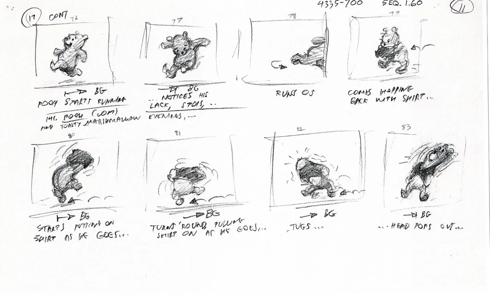 WINNIE THE POOH POOH'S GRAND ADVENTURE: The Search for Christopher Robin PRODUCTION USED Storyboard COPY LOT - 22 pages Walt Disney, 1997 From Animator Wendell Washer's Estate and used in the Production of the Feature Film W ith a Charles Scott Gallery Certificate of Authenticity Wendell Washer was one of the amazing animators who spent his life creating the shows and features we loved as children, working for Walt Disney, Warner Brothers, Filmation, Marvel and more. We were fortunate enough to acquire a large portion of the animation material from his estate. And Wendell worked on many iterations of Winnie the Pooh, including Pooh's Grand Adventure! Wendell had a very long history working on Disney's Winnie the Pooh. Earlier in his career he worked on some of the 1970's/1980's educational film strips all the way up to Pooh's Grand Adventure: The Search for Christopher Robin (1997). He worked extensively on this film and we have many of his subsets of the film's storyboards, from many different stages of production. This is one such subset. Note: we have multiple copies of some subsets, and some contain other subsets we have for sale. It is ALL copy. Each page measures approx. 8.5" x 14". Mr. Washer had this clipped together with a binder clip so there are indents from that. Check out Mr. Washer's IMDB here: https://www.imdb.com/name/nm0913381/ We will be putting up thousands of items from his estate, so stay tuned! PLEASE ASK ANY QUESTIONS AND MAKE REQUESTS BEFORE YOU BID. PAYMENT IS DUE WITHIN (5) DAYS OF AUCTION CLOSE. Combined Shipping: YES for U.S.! If you purchase multiple items, please wait until you are invoiced to pay. INTERNATIONAL BIDDERS : Ebay offers a few ways now to save you money on shipping. 1) If you buy all your items as auctions (not buy-it-now) DO NOT PAY. Let us send you an invoice. 2) If you want to purchase all buy-it-now items, either request we put them into one listing IN ADVANCE, or put them all in your cart and purchase from there. Once you pay for them we cannot combine them. We do not ship internationally outside of ebay?s program. About Us Our gallery has over three decades of experience buying and selling art, antiquities and ephemera. Feel free to contact us if you are a new or a seasoned collector. Search for us if you prefer or contact us here for any questions you might have. While we do not do digital appraisals we are happy to answer questions you might have or consider your item for consignment. And, as always, we will treat you how we want to be treated - with the highest level of customer service of any gallery. WE ARE FANATICAL ABOUT PACKAGING . So far we've never had an item arrived damaged. We will always make the smart choice to ship to you - the choice that gets it there safe (versus cheap). Our goal is to provide a reliable, safe delivery of your item. WE RECYCLE FOR THE ENVIRONMENT - so you may find everything from wrapping paper to plastic shopping bags as your packing material. WE NEVER compromise on the safety or cleanliness of your item, so rest assured we WILL get it to you in the shape it left us.