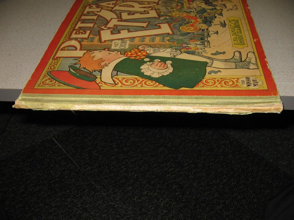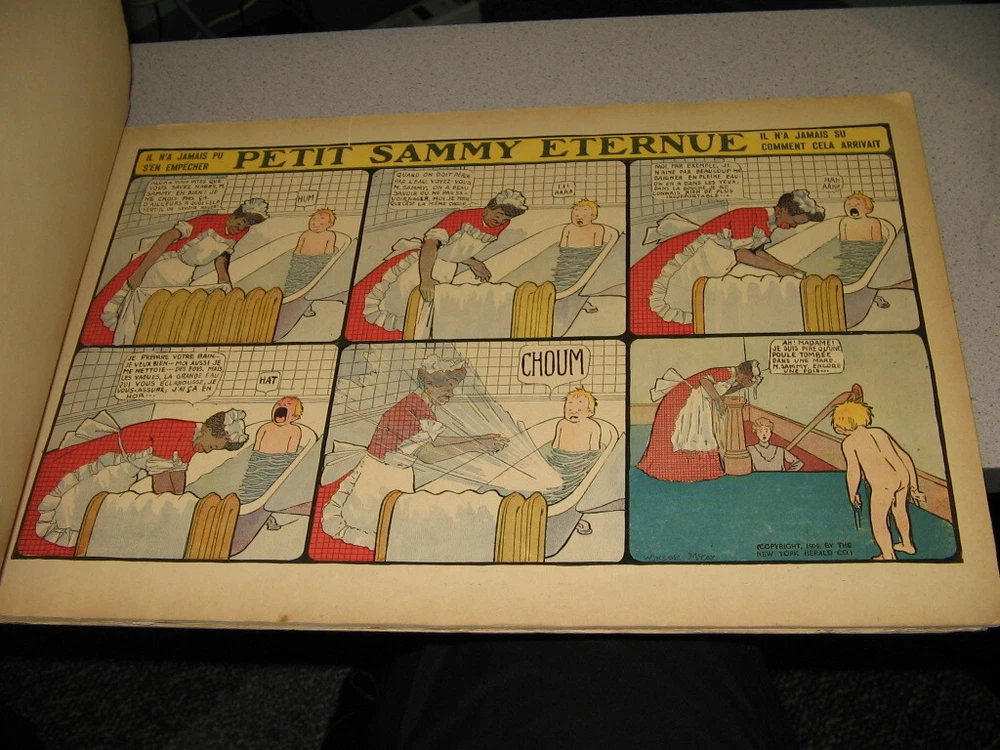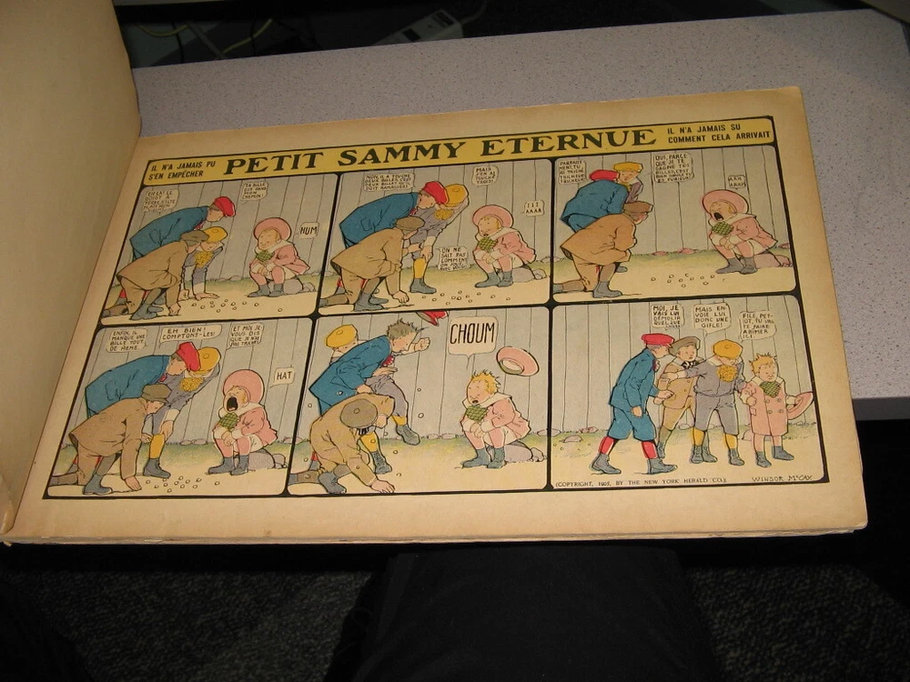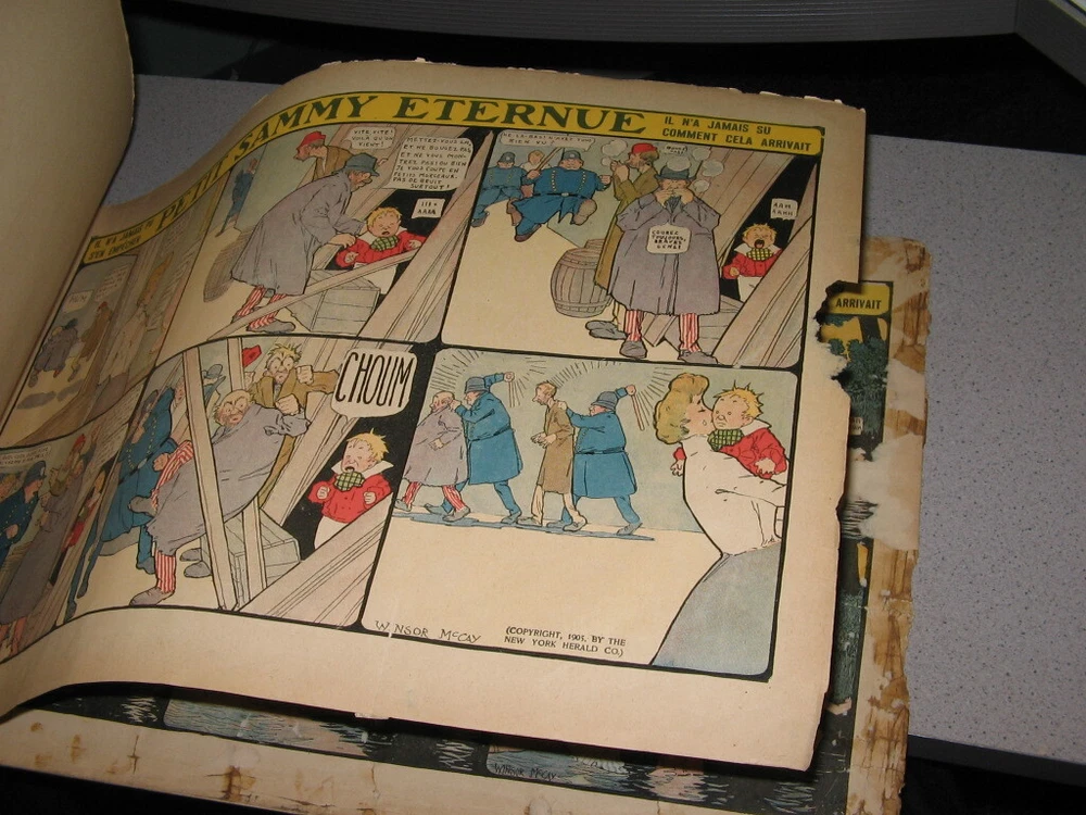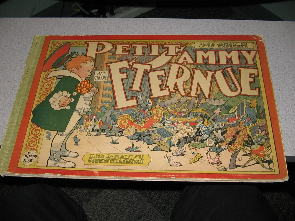 ITEM DESCRIPTION Winsor McCay Little Nemo Sammy Sneeze 1906 comic strip book FRENCH ed Hachette 2 $600.00 LITTLE SAMMY SNEEZE by WINSOR MCCAY 1905 French or Canadian version (published by Hachette) of the super rare Winsor McCay strip book for Little Sammy Sneeze (published in the USA by the NY Herald). This version is titled "Petit Sammy Eternue". GENERAL CONDITION OF PLATINUM ERA BOOKS ---comic books of this era, called the Platinum era by collectors, are notoriously impossible to find in good shape. Finding something from the 1900-1930 period in true FINE condition is almost as difficult as finding Golden Age material in CGC 9.4 or better. This format of large strip reprint books is typically in poor to good condition and always seem to be plagued by a major condition issue......missing pages, covers loose, heavy tape repairs, pieces of covers missing, book has come unbound from spine and is in a loose pile etc This book is in better than average condition plus it is a very rare title to begin with. CONDITION OF THIS ITEM: FRONT COVER --complete, close to very good, possibly a little better, which for THIS BOOK is amazing! One of the best copies of this book I have seen in 20 years. BACK COVER --complete but several glue stains from repairs to last 2 pages PAGE COUNT -- 29 physical pages making the page count 58, although the pages are not numbered. NOTE: Overstreet lists the 1905 US edition by the New York Herald at 72 pages. If that count is correct, then this French edition--which IS COMPLETE---is an abbreviated version. I know of 3 French copies and all 3 have the same 58 page count. SPINE -- 75% of fabric missing but book still solidly holds together PAGES --When I note the condition of individual pages below, I am counting a physical page...the entire sheet of paper, both sides. So physical page 12 mentioned below is actually page 23 and 24 in total page count of the book itself. almost all pages have a few small tears to the bottom edge closest to the spine, with many having repairs (sealed) on the reverse blank side of the page (see photo 7) pages with noteworthy defects aside from what was just mentioned.............. 12---creased 13--see photo, large piece off top right edge but does not affect art, large 4" repaired tear, crease 14,15--large "X" shaped crease 16---crease (NOTE---these creased pages 13-16, the crease may be a bindery wrinkle in the paper when originally printed) 19--glue stain lower left, tear repaired on back with large paper square (see photo #9) 25--has tear near spine (26-29 are also all pulled through from the staples) 26 has chipped top edge (see photo #8) 27 chipped top, right edge piece off, lower left small piece off, 2 larger tears repaired (see photos #11 and #12) 28,29--poor condition with bad amateur and excessive glue repairs (see last 4 photos) OFFERS ---I list 20,000+ items a month on EBAY. It is easier to put Best Offer on everything but because I lose 15% to EBAY fees no matter what, I may not be willing to take offers on everything I have listed. COMBINED SHIPPING ? YES...I can do this but ONLY If you follow the below instructions. To be clear, "combined shipping" is when you buy 3 items, for example, each with a shipping charge of $8, but since I can ship all 3 in the same box, you get charged $10-12 instead of $24. I cannot "combine shipping" after you have already paid. 1) DO NOT USE the cel phone app ! If you do, EBAY will force immediate payment and charge you full shipping on each item. I will not refund your money if this happens. 2) You must log into EBAY with a browser (Chrome, Safari etc) on your phone, computer or laptop to avoid this. 3) Put all items in your Cart and then, while in your Cart, click the "Request Total" link. "Request Total" will not be visible if you click "Checkout" under your Cart icon. You must click "View Cart" under your Cart icon. The URL should say cart.ebay.com Because EBAY and PAYPAL have made partial refunds so complicated, I will no longer be refunding $ if you do not follow these instructions. MY PHOTOS - If more than 1 item is shown in a photo--- then items are in SEPARATE listings unless otherwise stated ! Read description! PAYMENT-General Info PAYMENTS- USA Various payment options will show during checkout. Contact me if you need another payment option. EBAY is charging sales tax. Sellers have no control over that. PAYMENT-FOREIGN ORDERS Various payment options will show during checkout. Contact me if you need another payment option. SHIPPING COST ? .... see "SHIPPING COSTS : Shipping-Foreign" (shown below). CUSTOMS CHARGES -- your country may charge you customs fees before you can receive the package. This is not my responsibility NOR is it part of my shipping charge. It is a fee charged by the country you live in. SHIPPING COSTS SHIPPING-USA FIXED SHIPPING RATE = actual shipping cost & insurance & small handling fee ($2 or less). West Coast may be significantly higher on larger or heavier items. FYI here is what the US Post Office currently charges : SHIPPING-FOREIGN For UK, Canada,and Australia , PLEASE check with me first to make sure shipping charges EBAY has listed are correct! In the last few years, there have been HUGE increases in shipping cost outside the USA. The shipping cost listed is usually for FIRST CLASS shipping. The USPS will only insure Priority and Express shipments. ******There is a $2-$5 handling fee for foreign orders. ========================================================= Offered by DAVID WELCH ------ author of COLLECTING PEZ 1995 and Pictorial Guide to Plastic Candy Dispensers 1991. I have been a full time antique and collectibles dealer since 1989 and have been collecting since the early 1970s. I have been on EBAY since 1997. If you have questions about any negatives I have received, feel free to ask. THANK YOU TO THE PATIENT AND REALISTIC PEOPLE WHO MAKE 98% of EBAY DEALINGS A PLEASURE. I have been on EBAY since 1997 and this company's ability to make simple things 