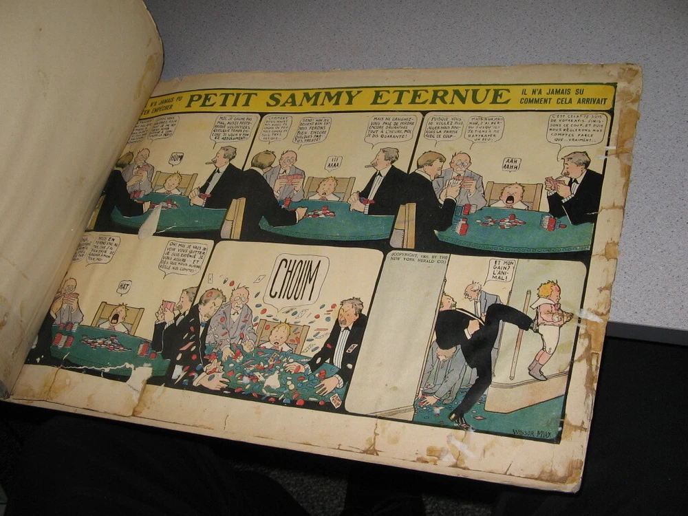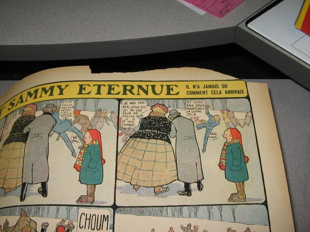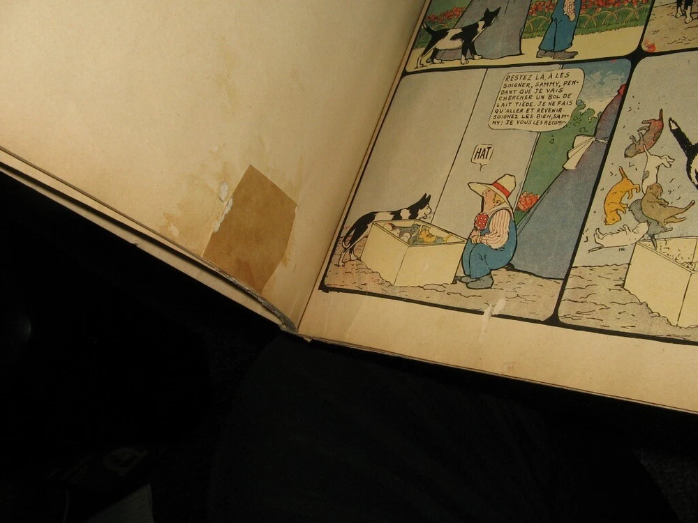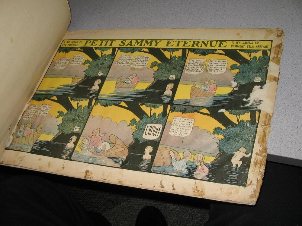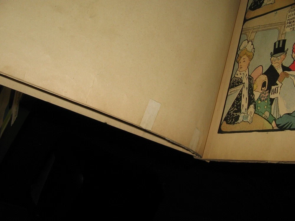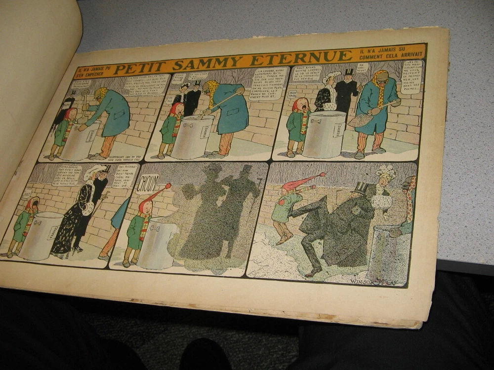 ITEM DESCRIPTION Winsor McCay Little Nemo Sammy Sneeze 1906 comic strip book FRENCH ed Hachette 2 $600.00 LITTLE SAMMY SNEEZE by WINSOR MCCAY 1905 French or Canadian version (published by Hachette) of the super rare Winsor McCay strip book for Little Sammy Sneeze (published in the USA by the NY Herald). This version is titled "Petit Sammy Eternue". GENERAL CONDITION OF PLATINUM ERA BOOKS ---comic books of this era, called the Platinum era by collectors, are notoriously impossible to find in good shape. Finding something from the 1900-1930 period in true FINE condition is almost as difficult as finding Golden Age material in CGC 9.4 or better. This format of large strip reprint books is typically in poor to good condition and always seem to be plagued by a major condition issue......missing pages, covers loose, heavy tape repairs, pieces of covers missing, book has come unbound from spine and is in a loose pile etc This book is in better than average condition plus it is a very rare title to begin with. CONDITION OF THIS ITEM: FRONT COVER --complete, close to very good, possibly a little better, which for THIS BOOK is amazing! One of the best copies of this book I have seen in 20 years. BACK COVER --complete but several glue stains from repairs to last 2 pages PAGE COUNT -- 29 physical pages making the page count 58, although the pages are not numbered. NOTE: Overstreet lists the 1905 US edition by the New York Herald at 72 pages. If that count is correct, then this French edition--which IS COMPLETE---is an abbreviated version. I know of 3 French copies and all 3 have the same 58 page count. SPINE -- 75% of fabric missing but book still solidly holds together PAGES --When I note the condition of individual pages below, I am counting a physical page...the entire sheet of paper, both sides. So physical page 12 mentioned below is actually page 23 and 24 in total page count of the book itself. almost all pages have a few small tears to the bottom edge closest to the spine, with many having repairs (sealed) on the reverse blank side of the page (see photo 7) pages with noteworthy defects aside from what was just mentioned.............. 12---creased 13--see photo, large piece off top right edge but does not affect art, large 4" repaired tear, crease 14,15--large "X" shaped crease 16---crease (NOTE---these creased pages 13-16, the crease may be a bindery wrinkle in the paper when originally printed) 19--glue stain lower left, tear repaired on back with large paper square (see photo #9) 25--has tear near spine (26-29 are also all pulled through from the staples) 26 has chipped top edge (see photo #8) 27 chipped top, right edge piece off, lower left small piece off, 2 larger tears repaired (see photos #11 and #12) 28,29--poor condition with bad amateur and excessive glue repairs (see last 4 photos) OFFERS ---I list 20,000+ items a month on EBAY. It is easier to put Best Offer on everything but because I lose 15% to EBAY fees no matter what, I may not be willing to take offers on everything I have listed. COMBINED SHIPPING ? YES...I can do this but ONLY If you follow the below instructions. To be clear, "combined shipping" is when you buy 3 items, for example, each with a shipping charge of $8, but since I can ship all 3 in the same box, you get charged $10-12 instead of $24. I cannot "combine shipping" after you have already paid. 1) DO NOT USE the cel phone app ! If you do, EBAY will force immediate payment and charge you full shipping on each item. I will not refund your money if this happens. 2) You must log into EBAY with a browser (Chrome, Safari etc) on your phone, computer or laptop to avoid this. 3) Put all items in your Cart and then, while in your Cart, click the "Request Total" link. "Request Total" will not be visible if you click "Checkout" under your Cart icon. You must click "View Cart" under your Cart icon. The URL should say cart.ebay.com Because EBAY and PAYPAL have made partial refunds so complicated, I will no longer be refunding $ if you do not follow these instructions. MY PHOTOS - If more than 1 item is shown in a photo--- then items are in SEPARATE listings unless otherwise stated ! Read description! PAYMENT-General Info PAYMENTS- USA Various payment options will show during checkout. Contact me if you need another payment option. EBAY is charging sales tax. Sellers have no control over that. PAYMENT-FOREIGN ORDERS Various payment options will show during checkout. Contact me if you need another payment option. SHIPPING COST ? .... see "SHIPPING COSTS : Shipping-Foreign" (shown below). CUSTOMS CHARGES -- your country may charge you customs fees before you can receive the package. This is not my responsibility NOR is it part of my shipping charge. It is a fee charged by the country you live in. SHIPPING COSTS SHIPPING-USA FIXED SHIPPING RATE = actual shipping cost & insurance & small handling fee ($2 or less). West Coast may be significantly higher on larger or heavier items. FYI here is what the US Post Office currently charges : SHIPPING-FOREIGN For UK, Canada,and Australia , PLEASE check with me first to make sure shipping charges EBAY has listed are correct! In the last few years, there have been HUGE increases in shipping cost outside the USA. The shipping cost listed is usually for FIRST CLASS shipping. The USPS will only insure Priority and Express shipments. ******There is a $2-$5 handling fee for foreign orders. ========================================================= Offered by DAVID WELCH ------ author of COLLECTING PEZ 1995 and Pictorial Guide to Plastic Candy Dispensers 1991. I have been a full time antique and collectibles dealer since 1989 and have been collecting since the early 1970s. I have been on EBAY since 1997. If you have questions about any negatives I have received, feel free to ask. THANK YOU TO THE PATIENT AND REALISTIC PEOPLE WHO MAKE 98% of EBAY DEALINGS A PLEASURE. I have been on EBAY since 1997 and this company's ability to make simple things 