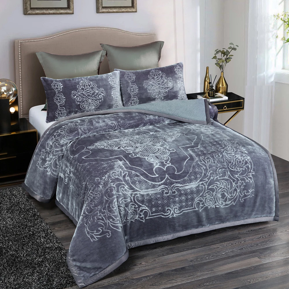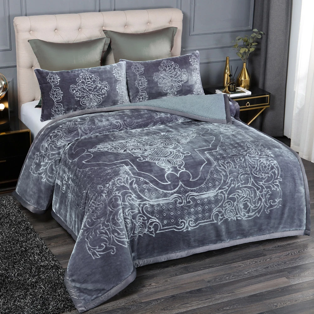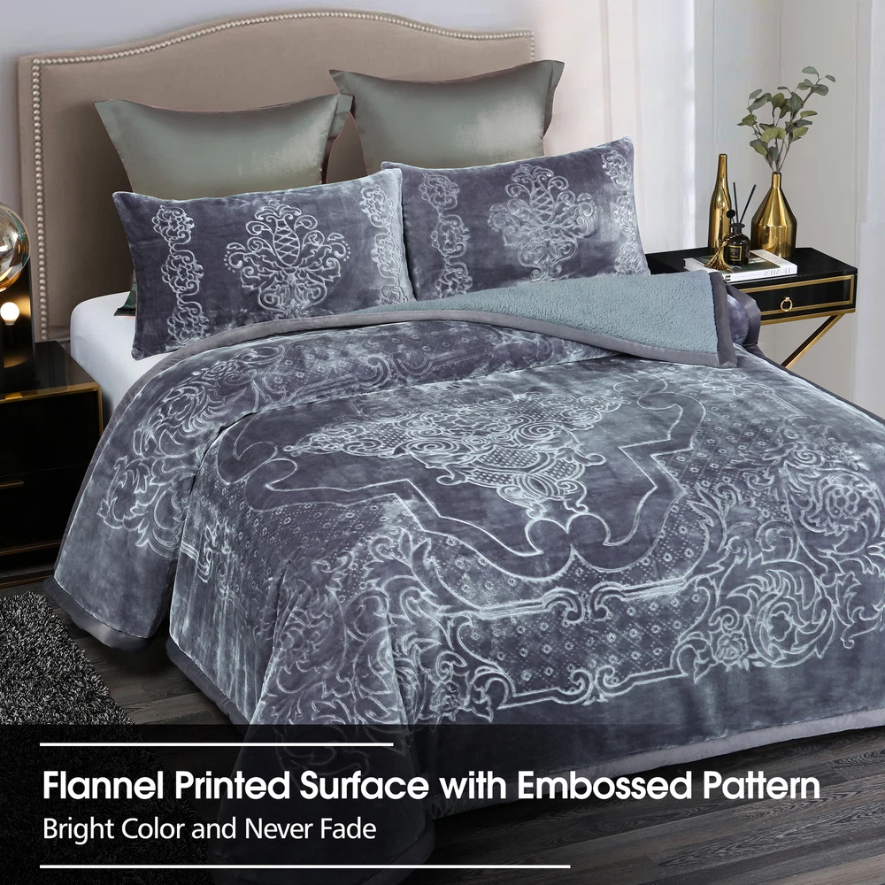 Payment Shipping Return policy About us Store category Other Blankets & Throws Quilts set Comforters & Sets Duvet Covers & Sets Mattress Pad & Protector Sheet set & Pillowcases Home Accessories Sign Up Now ! You may also like Sale Winter Blankets Grey Teal Froral Super Soft Sherpa 3 Ply Quilt With 2 Shams Product Description More Details Ply: 3 Ply Surface Material: flannel fleece Filled Material: polyester Reverse Material: Sherpa Pattern Design: Printed Embossed Size of Blanket: 79" x 91" Size of Pillow Sham: 18" x 30" Weight: 8 lbs. Package Included: 1 x Blanket, 2 x Pillow Sham Color&Pattern:Solid Colors /Printed colors Kindly Note: This is a Korean style blanket. All sizes are designed by standard Asia size, which is smaller than the US standard size. If you want to enjoy an oversize style blankets, please check our dimensions carefully or select a bigger size than your actual bed size. Thank you. Blanket Features: Soft and Warm - The Flannel Blanket with Sherpa reverse is extremely soft and warm .Keep you warm in the chilly winters . Traditional Pattern - beautiful traditional pattern with flowers and leaves all around Strong water absorption : Sherpa is effective in ricking away moisture .Keep you warm and dry in winter . Easy to Care - The plush cozy blanket is machine washable in gentle/delicate cycle, tumble dry on low. Payment Delivery details Return About us Contact us Payment We use eBay Managed Payment so that you could safely and securely pay via the following methods: Visa Master card Discover PayPal PayPal Credit Apple Pay (through the eBay app and mobile website only) Google Pay (through the eBay app, mobile website and desktop) Delivery details We offer One-day Handling time ,and it will takes about 3-6 days for shipping by USPS ,UPS or Fedex. If you have question about the shipping ,kindly contact us via Ebay Message , all messages will be replied timely . Return We accept change of mind return with 30 days ,so kindly shop with confidence . Any question ,please contact us via eBay Message . About us As a factory based supplier ,we always supply goods with affordable prices .All the items are in our local warehouse in CA . Continuous new designs will be launched ,subscribe our store and enjoy shopping here . Contact us Please contact us via eBay messages ,and you will get a reply promptly. Payment Shipping Return policy About us Ply: 3 Ply Surface Material: flannel fleece Filled Material: polyester Reverse Material: Sherpa Pattern Design: Printed Embossed Size of Blanket: 79" x 91" Size of Pillow Sham: 18" x 30" Weight: 8 lbs. Package Included: 1 x Blanket, 2 x Pillow Sham