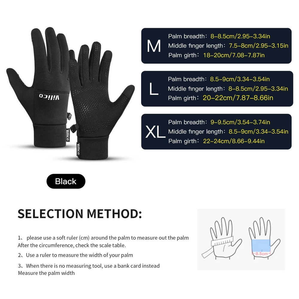 Product Description Features: THIN WINTER GLOVES】Warm gloves can help your fingers move flexibly during exercise or work. The gloves are made of windproof polyester outer, soft and warm technology velvet lining. which can quickly remove moisture from the hands. Breathable and windproof, keeping palms dry at all times. Elastic cuffs better fit the wrist and retain heat from the gloves. 【SENSITIVE TOUCHSCREEN FINGERTIPS】The fingertips (thumb and index finger) of the gloves are made of conductive ultra-fine fiber material, making it easy to control all your touchscreen devices. With this touchscreen glove, even in winter, you can finally use your smartphone comfortably without having to keep your hands cold. 【ANTI-SLIP SILICONE PALM】The anti slip silicone on the palm greatly increases the friction and wear resistance of the gloves. With these lightweight gloves, you can grip tools tightly and provide extra grip while driving or exercising, making it safer and more stable. 【MORE COMFORTABLE & DURABLE】Running gloves are made of elastic fabric, soft and comfortable. The shape of the gloves perfectly fits hands and ensures good mobility. All sewing parts adopt chain stitching, making the stitching elastic and reducing the problem of tearing caused by excessive force during movement, ensuring a longer service life. 【PERFECT GIFTS FOR MEN & WOMEN】Winter gloves come in 3 sizes, M(suitable for most women) and L/XL (suitable for most men). Please refer to the size chart for the appropriate fit and grip strength. The best gift for loved ones, friends, and family. If you have any questions, please contact us. Specification: Name:Winter Warm Touchscreen Gloves Material: Polyester,Fleece Gender: Men, Women Weight: 54g Size:M,L,XL Function: Fashion, non-slip, wear-resistant, warm, touch screen, windproof Suitable for: Mountaineering, skiing, running, fitness, hiking, cycling, motorcycle, etc Package Includes: 1 Pair of Winter Warm Gloves