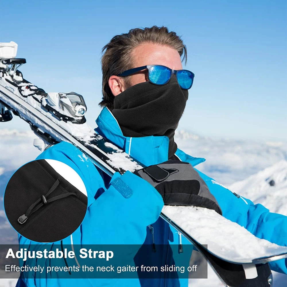 Product Description: Features: 1. NECK WARMER: Double-layer neck warmer is made of thicken fleece fabric which has the premium thermal retention to protect yourself & family from the heaviest winter weather. 2. SIZE: Length 10.2", width 9.8". Longer design to cover your face and neck for better wind and cold protection. Four needle six thread sewing seams makes it more durable. Stretchable to fit most heads to provide the ultimate winter protection. Perfect fit for women men and children. And it will keep original shape even washed many times. 3. MULTIFUNCTIONAL: Wearing comfort is the ideal choice for winter and cold weather, no more worry about cold, wind, dust and sun's uv ray while skiing, motorcycling, running, biking, trekking, mountain climbing, fishing, snowboarding, cycling in winter. 4. MULTI-USE: Multifunctional: Besides as a neck gaiter, you can use this item as ear warmer, beanie, pirate cap, balaclava, ski face mask, motorcycle face mask, snow face mask, cycling face mask and more. Package Included: 1x Winter Neck Warmer Gaiter