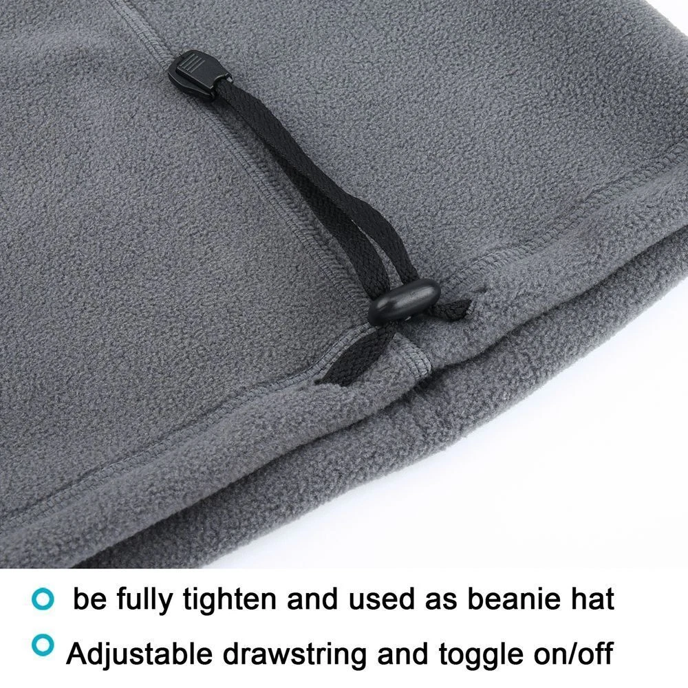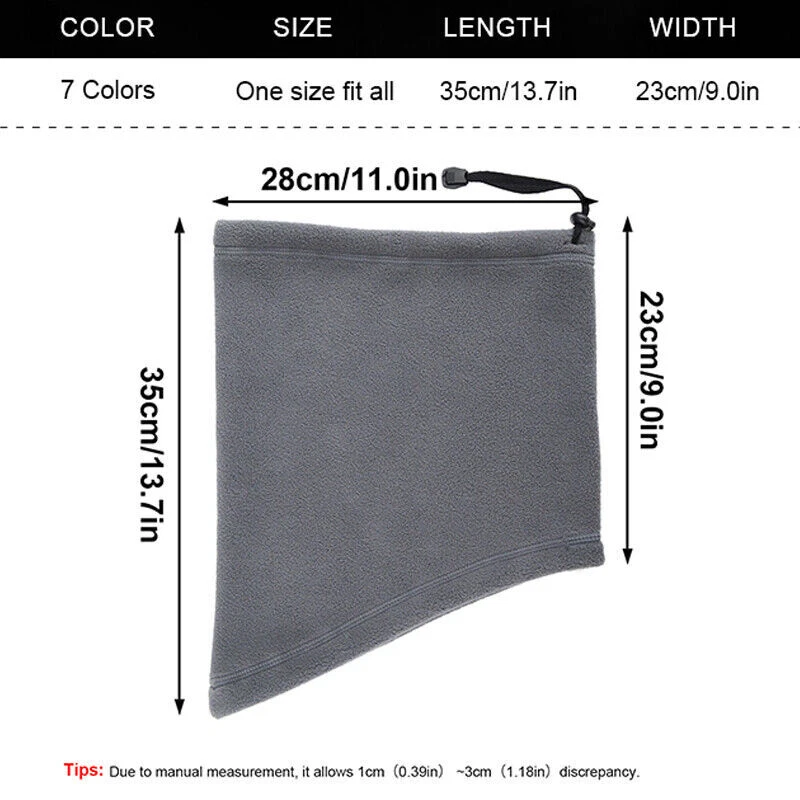 Unisex Fleece Neck Gaiter | Windproof, Warm, Adjustable Scarf for Winter Description : Stay warm and protected with this versatile fleece neck gaiter! Designed for men and women, it offers a soft, breathable texture while shielding you from wind, dust, and UV rays. Perfect for outdoor activities in winter, autumn, or spring. Features : Premium Material : Made of 97.8% polyester and 2.2% spandex for comfort and durability. Unique Triangle Design : Enhanced coverage for ultimate cold protection. Adjustable Fit : Drawstring design adapts to various face shapes. Light & Warm : Thick yet breathable with slight elasticity. Specifications : Size : 35 x 28 x 23 cm (One size fits most) Weight : 80g Perfect for hiking, skiing, or daily wear!