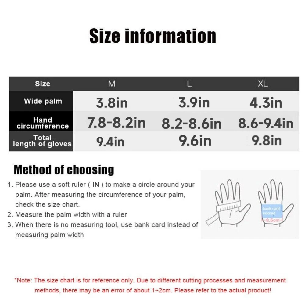 Features: 1. The palms and fingers have anti-slip patterns to effectively increase the grip and abrasion resistance of the gloves, shock absorption, anti-slip, and safer riding. 2. The tip of the thumb/index finger is made of conductive fiber cloth, for touching screen without taking off the gloves. 3. High-density fabric has good wind-proof effect, and it will not ventilate when going against the wind. It is equipped with a temperature-locked wrist to gather heat and keep warm. 4. The super soft velvet lining design not only provides heat insulation, also effectively resists the cold wind and has better warmth retention. 5. Nylon technical fabric, lotus leaf design, automatic condensation of water droplets, and high-density seams to strengthen the prevention of rainwater leakage Description: 1. Material: Nylon + Silicone 2. Size: M/L/XL 3. Weight: About 75g/Pair 4. Advantages: Touch Screen/Warmth/Non-slip and Wear-resistant Package Includes: 1 Pair of Winter Gloves NOTE: The product may vary slightly in color and measurement from what the pictures show, which does not affect the use.