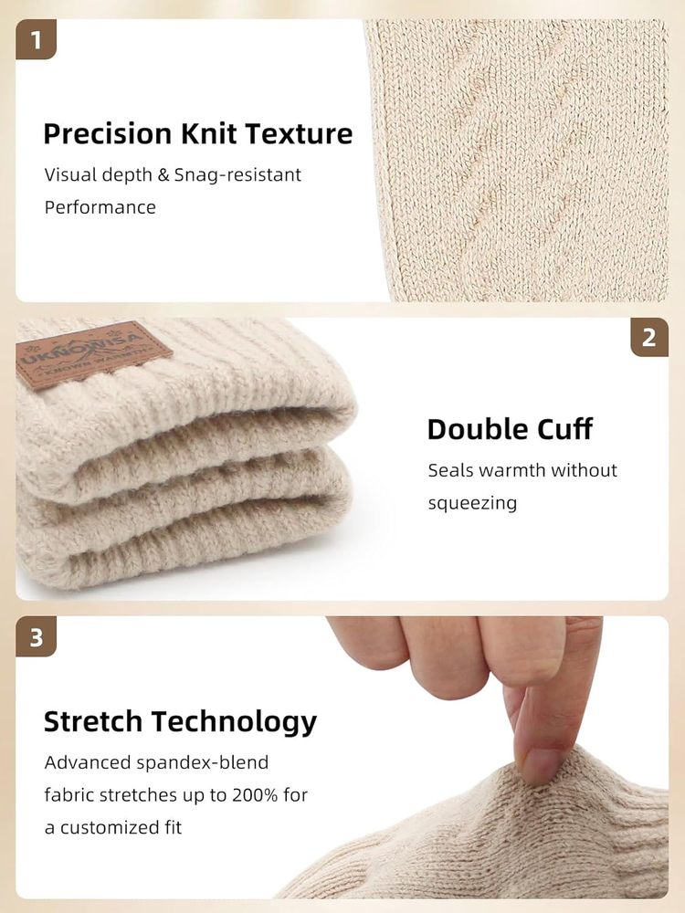 These winter gloves feature a premium blend of alpaca wool and acrylic fiber. The alpaca wool lining offers an exceptionally soft feel, while the acrylic component enhances durability, effectively reducing pilling to ensure the gloves maintain their original shape and elasticity over time. Touchscreen-compatible fingertips. The thumb and index finger feature a special conductive fiber process, allowing effortless operation of smartphones, tablets, and other touchscreen devices. No need to expose skin to the cold to send messages or take photos. Non-slip palm for secure grip. The palm surface features a high-friction silicone dot matrix coating, providing a firm, slip-resistant grip on steering wheels, shopping bags, ski poles, or phone cases. Stay in control, stay composed. These unisex gloves are the perfect companion for an active lifestyle. Whether commuting daily, hitting the slopes, or braving snowy outings, they deliver unmatched comfort and exceptional performance for all winter adventures. The perfect holiday gift. Looking for the ideal present? These unisex gloves are the answer. Combining practicality, comfort, and style, they make an excellent gift.