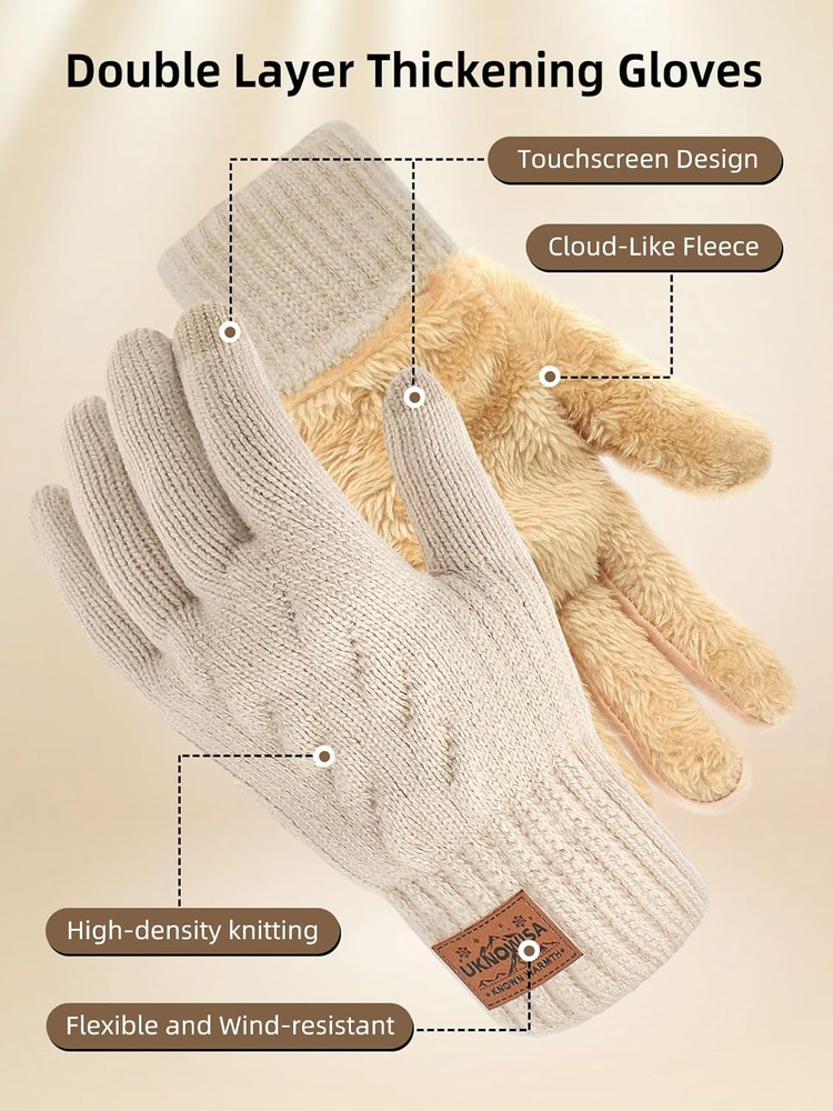 Winter Gloves for Men Women, Warm Fleece Lined with Touch Screen, Thermal Knit w