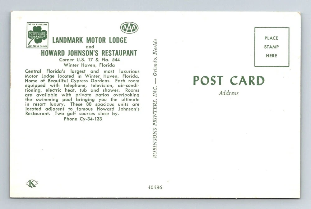 Winter Haven FL-Florida, Landmark Motor Lodge, Pool View, Vintage Postcard