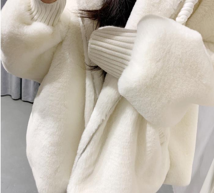 Winter Lamb Faux Fur Coat Women's Mid-length Loose Hooded Thicken Overcoat New