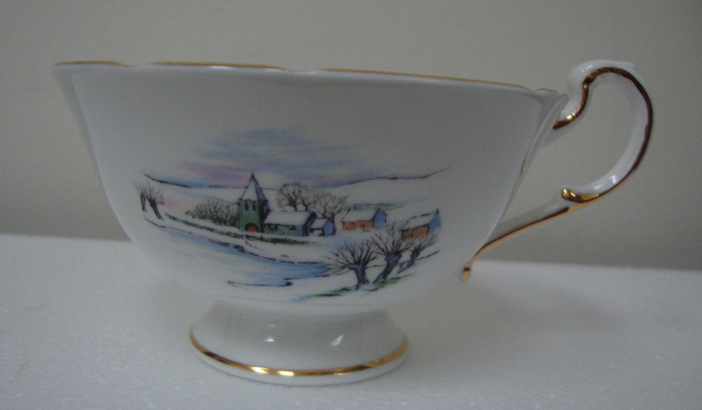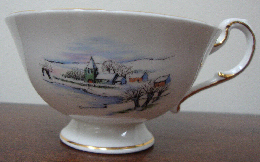 Vintage Paragon Tea Cup in the Seasonal Greetings Pattern. This appears to be the Winter scene. Great color with Gold trim around cup rim and around cup foot. Cup measures approximately 4" wide not including the handle and is about 2 1/4" tall. Great Vintage Condition. No nicks, chips or cracks. Please take a look at my other vintage items for sale by clicking "see other items" under my seller name above. I am happy to combine shipping where it is safe to ship the items together.