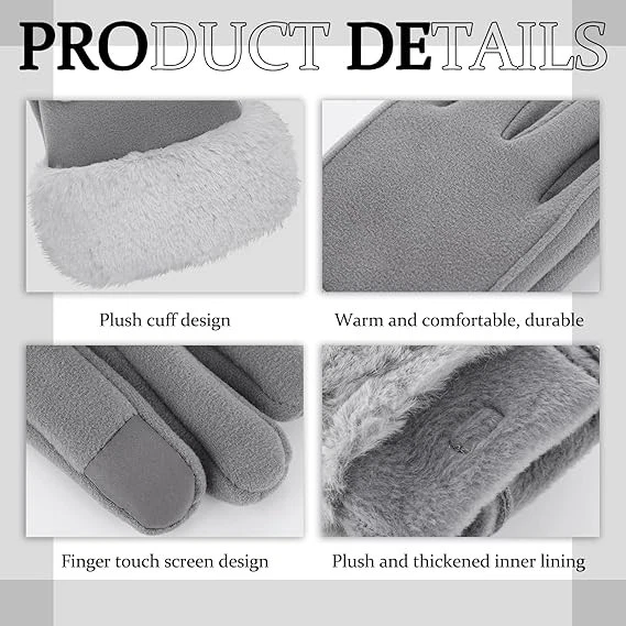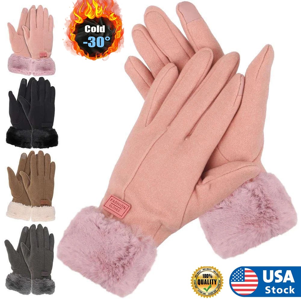 $ 5.12Women Ladies Winter Gloves Touch Screen Fleece Suede Warm Soft Fur Lined Thermal