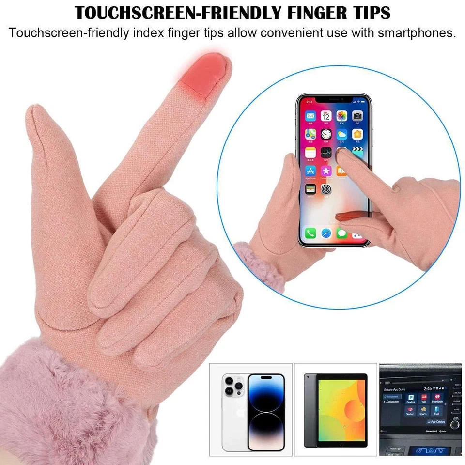 Women's Cute Bowtie Winter Warm Wool Touchscreen Gloves Warm Fleece Gloves Gifts