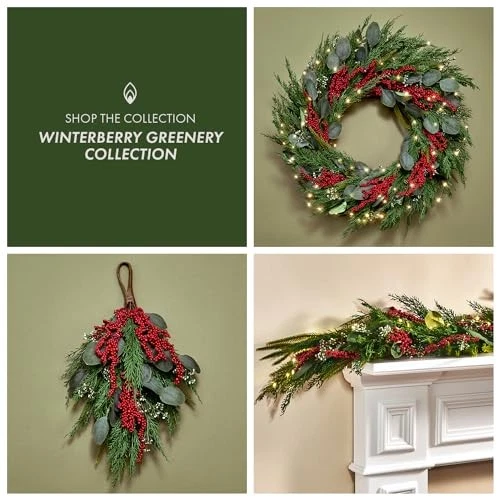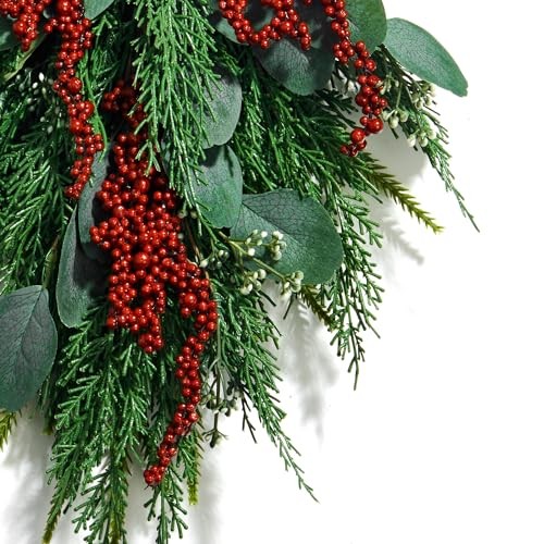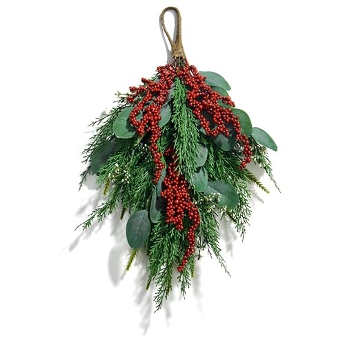 Winter Swag for Front Door, 18 Inch Greenery with Eucalyptus and Winterberry