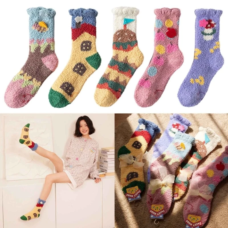 Winter Warm Fuzzy Socks Thick Thermal Soft Socks Coral Fleece Floor Sleep Socks