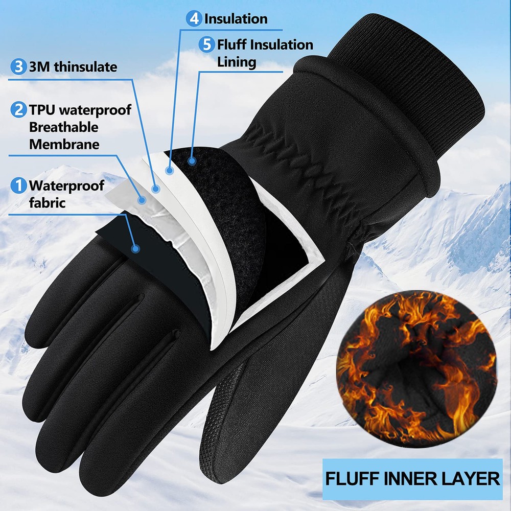 ð¥ð¥ãWARM AND COMFORTABLEãWinter gloves are made of premium Dacron and soft 3M Thinsulate Insulation cotton liner,which are moisture-wicking and breathable.Flannel lining and elastic cuffs enhance warmth and elasticity. Prevents cold, wind and rain from entering,keeps hands warm even when the temperature drops below zero. ð¥ð¥ãSENSITIVE TOUCHSCREENãAll fingertips are coated with touch conductive material, which maximizes the ratio of dexterity and warmth.You can operate any smart phone/tablet/car touch screen,without taking off warm gloves. convenient and flexible for outdoor calls, texting, typing, playing games or viewing navigation. ð¥ð¥ãANTI-SLIP DESIGNãWinter ski gloves are covered with full anti-skid PU leather on the palm to increase friction and abrasion resistance. Help you to hold ski poles, shovels or snowmobiles safely and securely, and protect our fingers from strong winter winds. ð¥ð¥ãWINDPROOF & WATERPROOFãMulti-layer soft shell moisture-proof fabric and TUP layer reinforced waterproof membrane. The tight elastic cuffs fit your wrist comfortably and are wind and rainproof. Which can keep hands warm and dry even in snow or light rain when you do outdoor sports or daily wear. ð¥ð¥ãBE YOUR BEST WINTER PARTNER ãWinter warm gloves are an excellent practical gift for men women, family or friends. Perfect for cycling, running, driving, horseback riding, hiking, mountaineering, golf, fishing, shooting, snow shoveling, cross-country skiing, snowmobiles and Other outdoor winter activities. If you encounter size or other problems, please feel free to contact us.