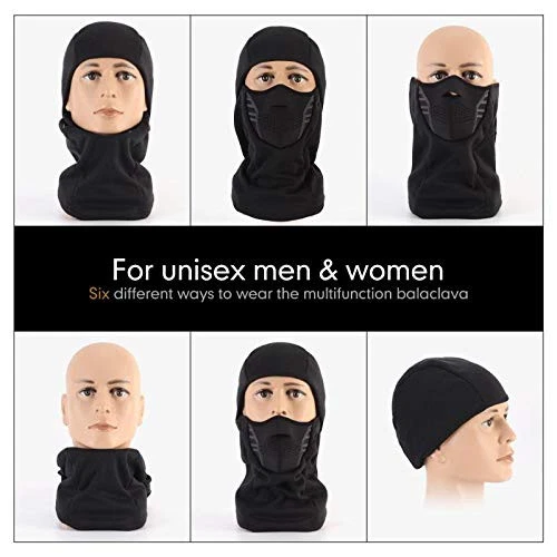 Improved 3D construction design, Hinged design and Breathable mesh vent design make the balaclavas intimate, the extra support design makes it more easier to breath.This balaclava hood won't fog up your ski goggles if you have it positioned just right. But it is not 100% anti-fog, especially in extremely cold weather for a long time. 5 in 1 versatile use in cold weather, Wear it as a face cover , bandana, half balaclava or neck gaiter.you can wear this balaclava on its own or under a helmet, and it also can be used as a dust cap. Breathe freely design, This full face ski has an unique breathable design on the nose and mouth part so that you can breathe freely while still keeping warm, this balaclava is more breathable for the unique design! size fits all, suit for adult men and women, stretchy soft fleece windproof fabric for a comfortable fit, it's a unisex versatile balaclava. Perfect for many occasions, this balaclava headwear is perfect for skiing, motorcycling, snowboarding, riding, construction dustproof, warehouse work and shoveling snow , and more outdoor activities like this.