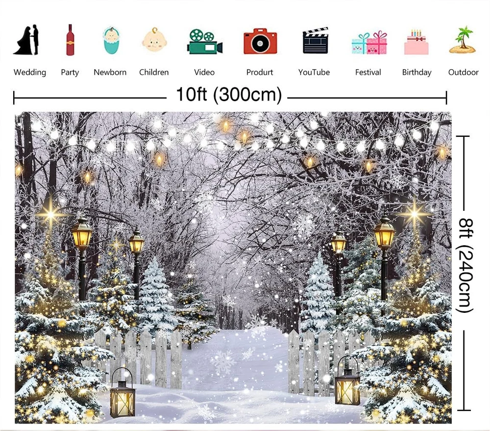 Product parameters: 1. Include: Backdrop x 1 2. Material: Thin vinyl material (not washable,folded for delivery) 3. Products size: 10(W) x 8(H) feet/300 x 240cm 4. Packing weight: 400g/0.75Ib Uses: Can be used for weddings, party, home backdrops, baby showers, bridal showers, holiday background, graduations, Christmas, etc. or as wallpapers, tapestries, curtains, tablecloths, home decor, etc. How to use: 1: It can be supported with Stands and clips because the backdrop is not very heavy. Thumbtacks, double-sided tape are also a good idea. 2: Keep a certain distance when taking pictures. Use lights to make the background brighter. better results. How to remove creases: There are ways to fix the crease problem. 1. Roll up tightly with a cylinder, wait for about a week, the crease will be removed 2. Iron the back of the background with a steam iron on the lowest gear, and the crease will also disappear. : Your satisfaction is our only purpose! If you have any questions about our background, please don't hesitate. You will a response in a short time. Thank You! 【Size And Color】: 10x8FT/(120" x 96"), high-resolution digital printing with eye-catching details and true-to-life colors. 【Premium Material】: This photography backdrop is made of high quality vinyl material, which is lightweight and easy to carry. 【Wide Applications】: Our background banners are perfect for use as holiday party decorations (baby shower, bridal shower, wedding, , festival, christening, graduation, retirement, etc.). Other uses (wallpapers, curtains, tapestries, tablecloths, room decoration, etc.) 【Perfect Party Decoration】: Our backdrops are perfect for party decorations, great designs and bright colors will catch the guests' attention, create a joyous atmosphere for your party, and leave fond memories. 【After-Sale 】: If you have any questions, we will serve you wholeheartedly. Hope you receive a satisfactory product, thank you for your !