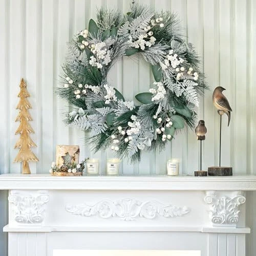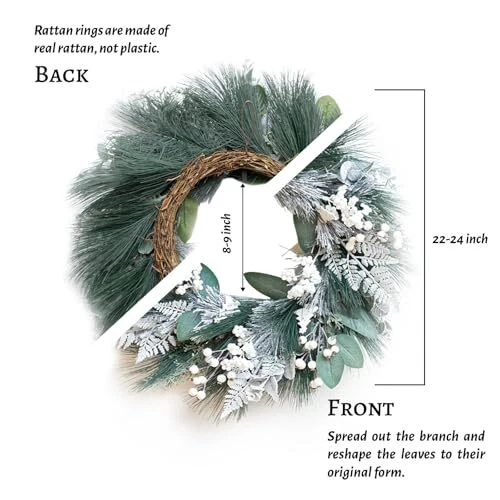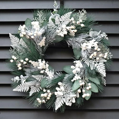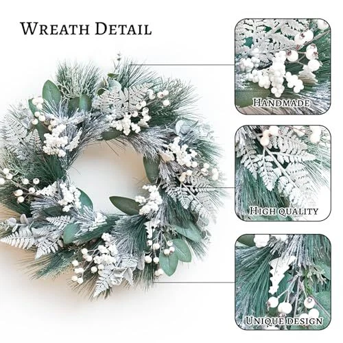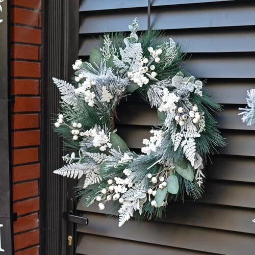 Return Policy Fast Delivery Trusted seller Winter Wreaths for Front Door 24 Inch Artificial Christmas Wreath Decorated with White Berries,Outdoor Winter Door Wreath Green Eucalyptus Wreath for Farmhouse Home Porch Wall Decor Product Description Stunning Outdoor Winter Wreath:'s winter door wreath crafted from realistic snowy pine needles, ferns, green eucalyptus & olive leaves, surrounded by embellishments with white berries like early winter snowflakes and or morning frost, bringing a rich winter atmosp.The white christmas tree in the center of the everyday wreath is so cute,it infuses the Gwreath with an otherworldly charm and elegance High Quality Xmas Wreath:The vibrant and realistic christmas wreaths for front door handcrafted by professional florists,they have rich experience and skills with great attention to detail and craftsmanship! So the christmas door wreath is very sturdy and durable,not easy to fall off Full In Shape & Premium Materials:This rustic farmhouse wreath handcrafted from grapevine,adorned with lush silk flocked pine needles, lifelike foam berries, natural pine cones and various premium christmas holiday decorations. Sufficient materials were used for each greener wreath,so the large outdoor wreath looks very full and no bald spot Widely Used: The eucalyptus wreaths for front door could be used indoor outdoor festival celebration or farmhouse wall,window,fireplace,window,kitchen,porch,spring winter door decor.Of course the winter wreath also Ideal for Harvest,Thanksgiving,Housewarming Gift and Christmas to add holiday color and warmth to your home Easy To Adjust:To prevent the olive wreath from being damaged during transportation,the big outdoor christmas wreath packed tightly in a sturdy 14 inch box.So before hanging,please refer to product instruction card to adjust the fluffiness of the green leaves wreath between to make it look fuller and more beautiful Perfect Size:The green wreaths for front door outside is about 22-24 inches in diameter when fully unfolded.It can be easily bent to reshape- please expand and fluff the roots to achieve the fullness required for the winter door reef Reusable Cedar Wreath:The large evergreen Wreath is durable,can be used indoors and outdoors.Delivered with a premium brown box to store the front door wreath,which will protect your gorgeous farmhouse wreath when the season is over. Also, it can be regarded as a gift for your family and friends Shipping Returns Payment Shipping Shipping is FREE to all addresses other than APO/PO boxes in the lower 48 states. All our stock ships from US-based warehouses. Shipped via USPS or UPS (depending on location and package weight) Unless stated otherwise, all orders will ship within 24-72 hours of your payment being processed. Check our feedback to see the great reviews of FAST shipping we offer. Returns Seller does not accept returns Payment We currently accept payment via eBay managed payments only. Once payment is cleared, we will dispatch your shipment within 1-3 business days. Please refer to the "Shipping" tab for more information regarding shipping speed to your destination.
