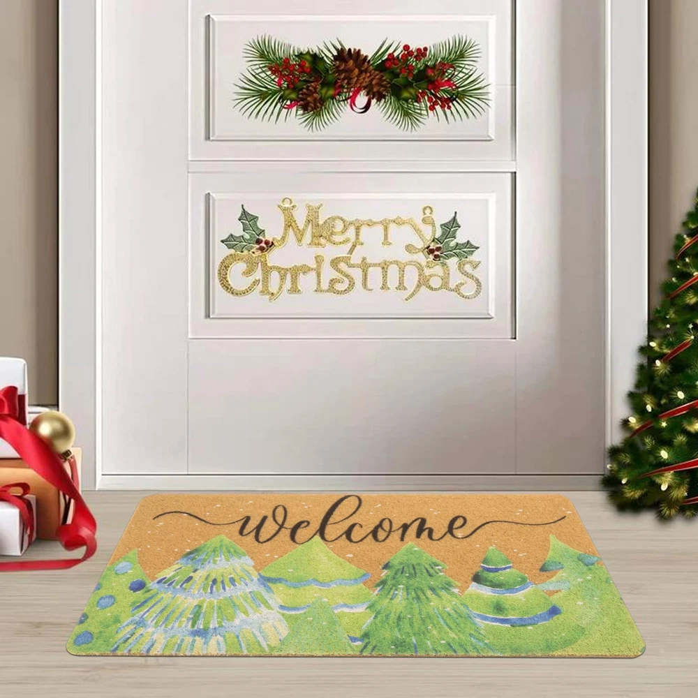 Cute Winter Christmas theme design of welcome mat bring festive spirit into your house. High Quality: The winter pine trees doormat is made of artificial coir, which is sturdy and reliable for long-term use, no shedding, can withstand high-traffic areas. Application: Cute Christmas theme design of welcome mat bring festive spirit into your house. Christmas mats for front door are reliable and pet friendly. The tightly woven coir traps dirt, debris and moisture while updating your front door. Non Slip: The Christmas decorative door mat measures 17" x 29". The thickness of the pile is 0.4 inch. The non-slip PVC backing provides grip support for your floors to prevent slipping. Easy to Clean: The non-slip outdoor entrance mat can be an excellent addition to home. Shake off the dirt from the doormat or use a vacuum cleaner and rinse the entrance mat with a hose. Welcome your guests and family with this funny welcome mat on the front porch. Occasion: Christmas welcome mat will add a beautiful touch to your front door, porch, patio, garage, garden, balcony, farmhouse. Instantly transform your home into elegance. Designed specifically for indoor and outdoor use, it's the perfect choice for any room or entryway in the home.