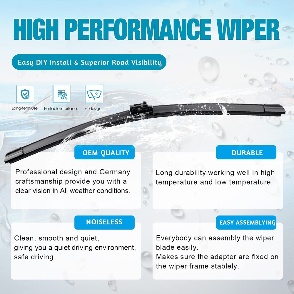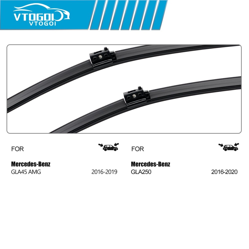 【Fitment】:for 2016-2019 Mercedes-Benz GLA45 AMG windshield wiper blades and 2016-2020 Mercedes-Benz GLA250 windshield wiper blades. 【Spring Steel】:Steel spring double precision tension, with asymmetric spoiler, can provide uniform pressure distribution for the windshield, better meet the curved windshield to eliminate wet spots that may interfere with the field of vision. 【Material】:Natural , can provide extremely smooth, clean, no shaking wiping effect. 【Aerodynamic Design】:Aerodynamic design significantly reduces drag and wind noise.The treeless design helps prevent snow and ice.the curve of the windshield to make your path brighter. 【What You Will 】:12 months , professional team 24 hours online .Complete set of 3 wiper blades :24"+19"+12" (driver side and passenger side and Rear).