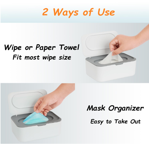 Wipes Dispenser, Wipe Holder for Baby & Adult, Seposeve Refillable Baby Wipe Container, Keeps Wipes Clean. Non-Slip, Easy Pull Wipes Pouch Case, Grey Far from Dirty Wipe: Baby wipes easily get dirty by dust and other spoils after unboxing, Seposeve wipe holder can effectively help you to avoid this problem. Effectively keeps the wipe clean, away from dust and stains. Life-safer for parents. Keep the Wipes Clean: Seposeve uses a dust cover lid and silicone ring inside the wipe dispenser which keeps the wipes clean in wipe dispenser. Easy to Pull Wipes: The Large outlet size: 4.33 *1.97 inches,which is enough to reach in and pull out the wipes. Make your life more convenient. Capacity - 80 Wipes: The top concave design of the lid is suitable for placing all kinds of small life items or other baby items. Up to 7.52*5.11*3.01 inches. Recommended to fill in 30-50 pcs wipes for easier use Multi-scene Use: Indoors suitable for living room, baby nursery, bedroom, kitchen, bathroom, etc., Outdoors can be placed in a stroller organizer or diaper bag/caddy.