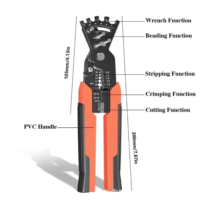 Features: Brand new and high quality This electrical stripping tool is suitable for stripping, insulated terminals of aluminum wire, cable, sheathed wire, and bare terminals. This multifunction wire plier Tool is mainly used for power cord processing and cable joint stripping. It can separate the two end of wire and strips wire before wiring. The Multifunctional wire splitting pliers selected from metal material, which have good corrosion resistance. Easy to pull wire apart. The handle is insulating material and have design with antislip grooves to provide leverages and a comfortable grip experience, helping sufficient strength while reducing hand fatigue. This stripping plier is hard enough to ensure durability and can easily crimps insulated terminals such as connection, butt connectors gauges wire and more. There is a simple cutting design on the handle, which can cut wire conveniently and quickly. The top of wire have wrenches and foldable line function design, with scale, which is convenient and fast to use. Specifications: Material:Steel Color:Grey/Yellow Size:Approx.200mm/7.87inch Package Includes: 1x Wire note: 1.Please allow 1-2cm errors due to manual measurement, make sure that you not mind before order. 2.Due to the differences between different monitors, the picture may not reflect the actual of the item.