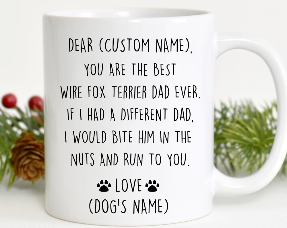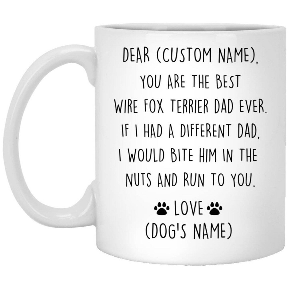 Wire Fox Terrier Dad Birthday Gift Wire Fox Dad Christmas Gift Wire Fox Dad Valetine Wirehaired Terrier Dad Mug Wire Fox Dad Appreciate Product Details.. This high quality 11oz. ceramic white mug has a premium hard coat that provides crisp and vibrant color reproduction sure to last for years. Perfect for all hot & cold beverages. The highest quality printing possible is used. It will never fade no matter how many times you wash it. Material: 100% Ceramic. Print both sides. Dishwasher and Microwave Safe. High Gloss + Premium White Finish. Printed in the U.S.A. Personalized & Custom. We support personalized and custom mug to add custom, when placing an order, you can add notes to the "order note" in shipping address section. Also you can contact us directly via message. Shipping Info. Ready to ship in 1 to 2 business days, All products are made-to-order and proudly printed in the United States. Shipped by USPS and DHL, You will receive your order in 5-7 days. Replace & Refund. All products are defective during shipping broken, chipped will be replaced free of charge. You are not satisfied with the product, we will refund 100% money to you. If any other issues arise, please do not hesitate to message, we would be more than happy to assist you.