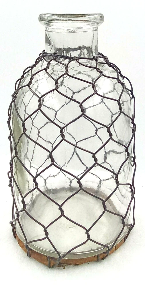 Wire Mesh Bottle Vase Glass Clear Black Wire Rustic Round Lip Mouth 6.5" Tall. Measurements are approximately 6.5" tall and 3" in diameter. Condition is Brand New/Unused. Please check out the photos in this listing for further information. If you have any questions or concerns, please contact us. Thank you for your support! Please check out The Burly Owl Lady eBay store for more home decor goodies! Shipping USPS. We ship vintage and new items. We carefully pack with care to ensure thesafety of each item. We do not passthese packaging costs onto the buyer. Furthermore, we do not charge any extra fees for handling. We only charge for the USPS shipping charge. We do monitor shipping prices frequently. In most cases, we do find the USPS to be themost inexpensive way to ship our products. We try to be as detailed as we possibly can in our photosand descriptions. We try to mention anyimperfections in our vintage items. Wemay miss things from time to time or our photos may not be enough clarificationfor you to see the item. We will be gladto answer any questions or send you more photos. If at any time, you have a question or issue, please contactus immediately. We will contact youwithin 24 hours. We want to make sureyou have a good experience in purchasing any of the products. If you are happy with your purchase, please leavefeedback. It will help us to grow andoffer more great items in our store! Thank you for your interest in one of the many products inour eBay store! Renee Burly Owl Lady