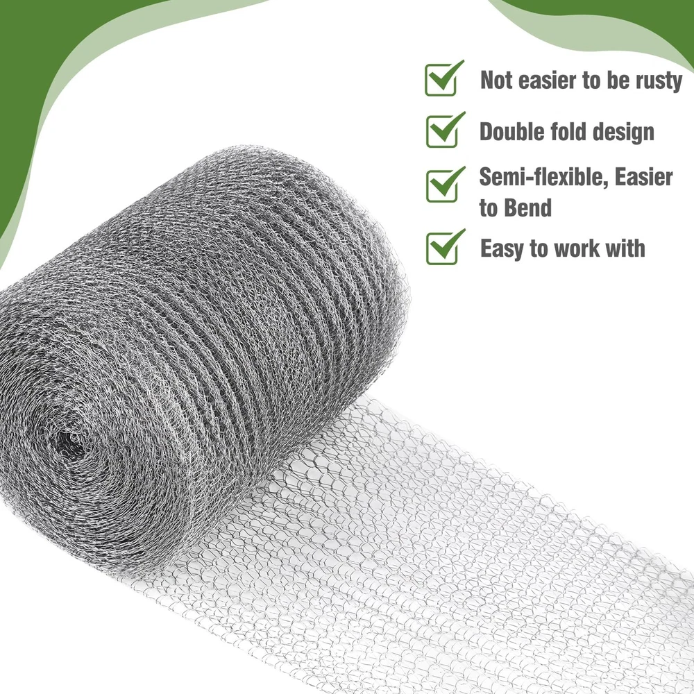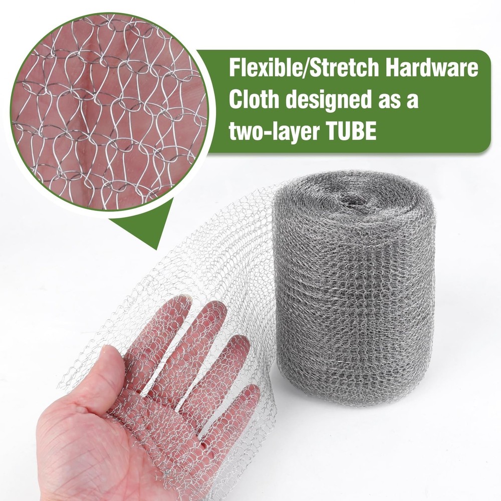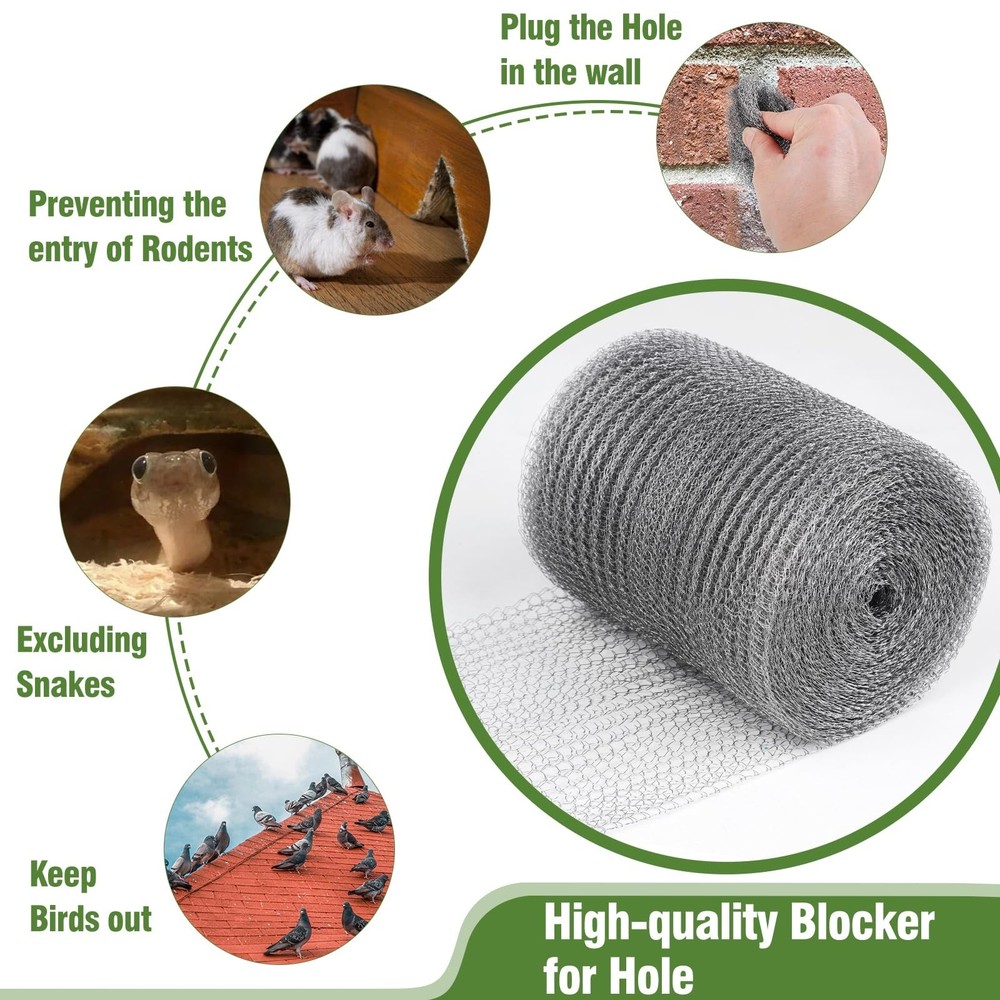 Wire Mesh for Mice Control 5" X 100',Steel Wool Mice Control,Upgraded Stainless Steel Wire Mesh Roll,Hole Filler Fabric Suitable for Gardens and Houses Product Details Size: 5"X100' Color: Grey Number of Items: 1 Brand: FIFIFO MPN: fififo5X100 UPC: Does not apply EAN: Does not apply Material: stainless steel mesh Brand: FIFIFO Item dimensions L x W x H: 5.1 x 5.1 x 5.9 inches Color: Grey Shape: Rectangular Product Dimensions : 5.1 x 5.1 x 5.9 inches; 15.04 ounces Date First Available : February 1, 2024 Manufacturer : FIFIFO Best Sellers Rank: #252,674 in Industrial & Scientific (See Top 100 in Industrial & Scientific) #231 in Stainless Steel Sheets #287 in Mesh & Wire Cloth #231 in Stainless Steel Sheets #287 in Mesh & Wire Cloth Customer Reviews: 4.2 4.2 out of 5 stars (46) Material quality The wire mesh roll made of 304 stainless steel, not easy to rust, with semi-flexible dense weave structure, easy to completely, not easy to break.And stainless steel wrap is easy to cut and roll to size needed Large size and High quality The steel mesh rodent control measures 5 inches X 100 feet and is easy to cut, allowing you to use the mesh in more places to keep rodent out Effective hole pluggingIdeal for keeping annoying creatures out of places you don't want them to go and be a mesh netting for plants for filling holes of any shape and size Fruit protectionCut the right size wire mesh to wrap around the fruit or potted plant you want to protect from squirrels, birds chewing up the roots, but it won't stop airborne moisture from getting in NoteWhen cutting the hole filler mesh, you can put a piece of non-scratchy paper underneath, or cut them above the trash can to prevent wire scraps from splattering everywhere