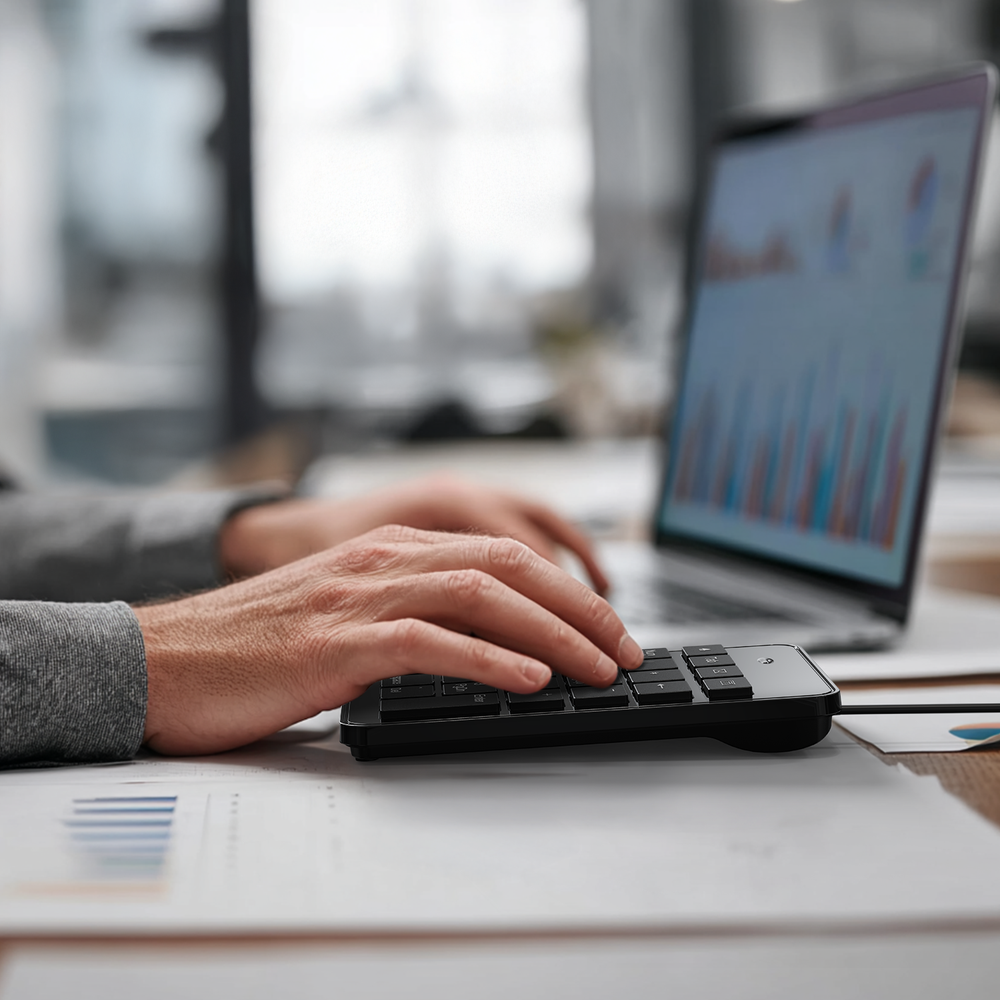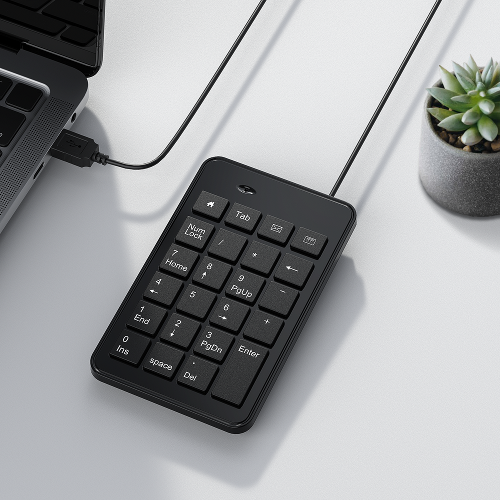 CBUS Wired USB-A Numeric Keypad 23 Keys Numpad Keyboard Effortless Setup – Wired USB Number keypad is plug-and-play, requiring no drivers or batteries, ensuring a quick and stable connection for immediate use Quiet & Comfortable Typing – The 23-key USB numeric keypad features an integrated ergonomic tilt for improved comfort and reduced wrist strain. Enjoy a quiet, soft-touch experience with low-noise keystrokes, perfect for long hours of use USB Number Pad Keyboard – With a compact size, this keypad enhances speed and accuracy, making it easier to locate and press the numbers you need. It also supports NumLock for reliable performance Lightweight & Compact – This black USB numpad wired is suitable for tasks like working on spreadsheets, making it an excellent choice for home, office, school, business trips, or daily use, providing convenient and efficient number input for accounting, calculation and more Broad Compatibility – USB number pad for laptop, Windows 2000, XP, Vista, Windows 7/8/10/11, Mac, MacOS, iOS, inux, and Android operating systems. Works with PC, desktop, notebook, Chromebooks, tablets, and other devices with USB Type-A ports