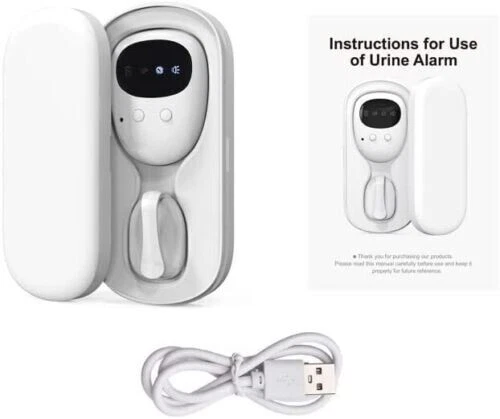 Split Type Bed Wetting Alarm, Wireless Bedwetting Alarm, Rechargeable Pee Alarm, Potty Alarm, 3 Reminder Modes, Sound/Vibration, Underwear Clip Feature: - Split-type cordless bedwetting alarm, convenient for parents to carry the receiver around and monitor without staying next to the kids - 3 Reminder Modes: vibration / sound / vibration + sound to choose from - Waterproof Sensor, easy to clip onto the edge of underwear - Charging & Storage Box: sensor & receiver built with lithium batteries, charged through the box - Suitable for babies to stay away from skin diseases and red buttocks and to make progress in bedwetting problems, ideal for bedridden patients and the elderly Specifications - Material: ABS - Charging Voltage: 5V 1A - Effective Distance: ≤ 20m / 65.6ft - Sensor Battery: Lithium Battery 55mAh - Receiver Battery: Lithium Battery 300mAh - Applicable Plug: DC5V Packing List - 1 * Receiver - 1 * Sensor - 1 * Charging Case - 1 * Charging Cable - 1 * User Manual