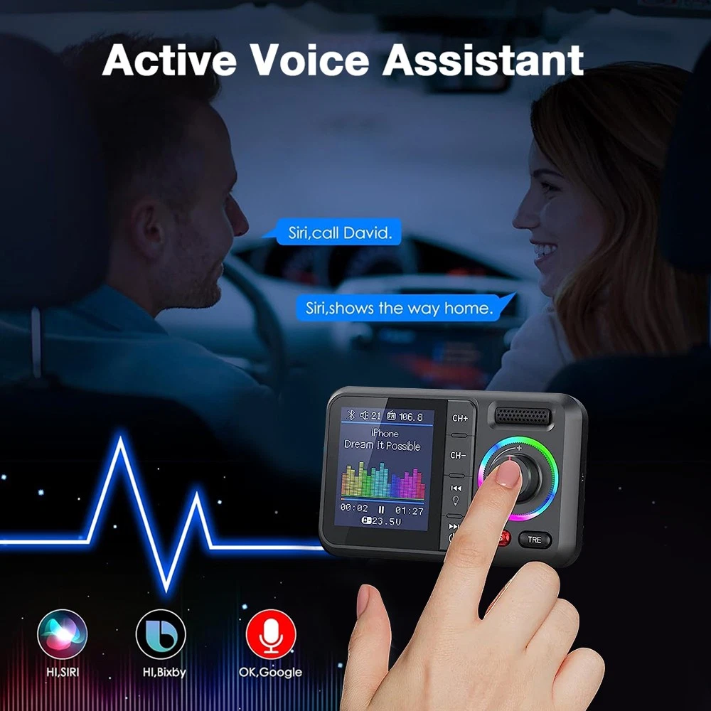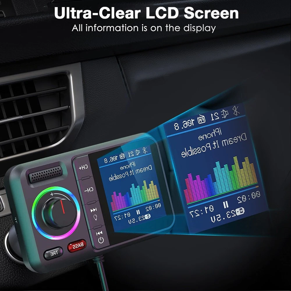 Product Description Description: Colorful LCD Screen: This Bluetooth adapter is equipped with large LCD screen, providing more information than other products. Display details include Bluetooth name, FM channels, connected device name, car voltage, music title, music count, volume, incoming phone numbers and play status. The 360° flexible design ensures a comfortable visual experience and easy access for hands-free calling. Hands-Free Calling & Bluetooth 5.0: With the latest CVC noise cancellation and Digital Signal Processor (DSP) technologies, the built-in microphone picks up your voice from all directions. The Bluetooth 5.0 chip ensures a faster and more stable connection, making it easier to stream music and make hands-free calls. It also reconnects automatically to the last paired device for convenience. Dual USB Ports & QC3.0 Fast Charging: The bluetooth FM transmitter features dual USB ports (QC3.0+2.4A), allowing you to charge two devices simultaneously with QC3.0 technology for fast charging—up to 4x faster than standard chargers. It also includes TF card and AUX ports, giving you multiple ways to play music via USB drive, TF card, AUX or Bluetooth. Note: TF card not included. Activate Siri & Hands-Free Use: Easily stay focused on the road by activating Siri or Google Assistant for hands-free calling, messaging and navigation. The large button allows you to answer, redial, hang up or reject calls with a simple press. It also supports voice notifications from navigation apps, making it even easier to stay safe and connected while driving. Enhanced Treble & Bass Control: Experience Hi-Fi sound with the FM transmitter, featuring independent treble and bass control for a personalized audio experience. Adjust the sound to your preference and enjoy audiophile-grade quality with an auto-syncing colorful music spectrum that creates the perfect party atmosphere. Specifications: Name: Car Bluetooth Player Material: ABS Color: Black Size: 82×52mm/3.22×2.04inch Bluetooth Version: 5.0 Bluetooth Distance: >7M FM Transmission Frequency: 87.5-108.0MHz FM Transmission Distance: <3M Package Includeds: 1×Bluetooth Adapter 1×3.5mm Audio Cable 1×User Manual Note: 1. Please allow 0~1 inch error due to manual measurement. Thanks for your understanding. 2. Monitors are not calibrated same, item color displayed in photos may be showing slightly different from the real object. Please take the real one as standard. Payment Shipping Returns Contact Us 1. This is the payment method we can accept: Paypal 2. You can checkout and pay immediately after the auction ends or you complete the purchases. If you need an eBay invoice sent to you by Email, please contact us before making payments. 3.Once the checkout is completed, you will not be able to include any additional purchases. We start to process and fulfill your order once payment is received. New purchases after the checkout will be processed separately. 4. Payments are expected within 4 days after the order is confirmed. Unpaid item (UPI) strike may be filed with eBay upon non-receipt of payment. 1. How much is the shipping & handling (S&H)? Our shipping and handling charges are clearly stated in the Shipping and Payments section of the item page, and we provide Free Shipping for most items. 2. For multiple purchases, the combine shipping discount will be automatically calculated when you check out and pay all of your purchases together. Items checked out separately may not be combined and the combine shipping discount will not be offered automatically. 3. Please make sure the correct Ship-To address is entered before checking out. Once the payment is completed, you may not be able to change the shipping address. We shall not be held responsible for any wrong or undeliverable addresses. 4. We usually ship within 1-2 business days of receiving cleared payment. 1. We put buyer's satisfaction at top priority. If you're not pleased with your purchases, we'll be happy to make an exchange or refund the item total price less Shipping and Handling (S&H) charges within 30 days of your purchases. 2. For any Exchange, Refund or Return, the item must be in its original condition, including the box, packaging, and all the accessories or gifts. 3. We'll provide prepaid return shipping label if the return is a result of our error. Postage reimbursement is offered only on standard mails, and it needs to be approved by our staff prior to returning. 4. Please allow up to 7 business days for returns to be processed. 5. Shipping and Handling (S&H) charges are not refundable. 1. Customer satisfaction is very important to us and our feedback rating reflects this satisfaction. If you have any question or concern, please contact us via eBay message. 2. We respond to all eBay messages as quickly as possible. Though your question will usually be answered very soon, please allow us up to one business day before you start thinking your message is neglected or the reply is avoided, because there would be time difference, non-working hours or public holidays that have prevented us from making an instant response. Payment 1. This is the payment method we can accept: Paypal 2. You can checkout and pay immediately after the auction ends or you complete the purchases. If you need an eBay invoice sent to you by Email, please contact us before making payments. 3.Once the checkout is completed, you will not be able to include any additional purchases. We start to process and fulfill your order once payment is received. New purchases after the checkout will be processed separately. 4. Payments are expected within 4 days after the order is confirmed. Unpaid item (UPI) strike may be filed with eBay upon non-receipt of payment. Shipping 1. How much is the shipping & handling (S&H)? Our shipping and handling charges are clearly stated in the Shipping and Payments section of the item page, and we provide Free Shipping for most items. 2. For multiple purchases, the combine shipping discount