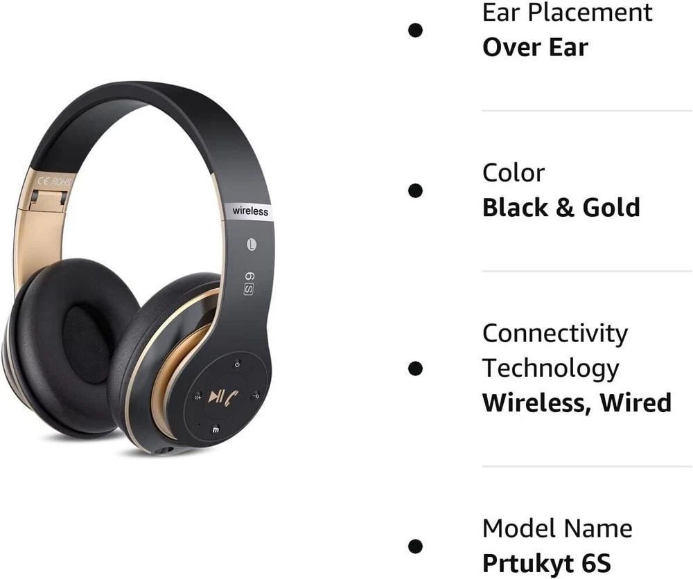 eBay 【 HI-FI WIRELESS HEADPHONES】 : High Definition Stereo Headphones, and advanced bluetooth 5.0 chip that aim to deliver you superior sound quality with high fidelity deep bass and crystal clear treble, Deep, accurate bass response, extended frequency range, rechargeable. Lose yourself in immersive music even in the lowest volume levels! 【 BLUETOOTH 5.0 HEADPHONES】 : Our upgrade Bluetooth 5.0 technology ensures fast and stable connections to your Bluetooth devices and low latency during audio/video streaming. Headphones wireless provide high-quality built in mic for hands free calling.No more worries about audio dropouts during phone calls and music listening. 【BUILT FOR YOUR COMFORTABILITY 】 : The Earmuff imitate human skin texture, ensuring lasting comfort. They are foldable and stretchable, which allows you to find the perfect fit without constraint and excellent durability. Wireless Headphones is the best Choice for Travel, Sport and Every day use by Unisex Kids, Teens and Adults. 【ADJUSTABLE AND PORTABLE DESIGN】 : Adjustable headband are ergonomic design and ultra-soft ear cups, Bluetooth headphones provide a comfortable around-ear fit. Foldable design makes it easy for you to take the headphones whenever they go. Perfect for on-line courses, classes, movies, etc. 【LONG BATTERY LIFE & DUAL MODE】 : Wireless Headphones Over Ear are Rechargeable. 500mAh battery, 20hours of music time, 2.5 hours Fast Charing. After 30 hours of playtime, you can switch to wired mode and enjoy your music NON-STOP. You do not need to worry about power shortage problem for the long travel. By choosing PRTUKYT, You are covered with 12 Months warranty and 100% Customer satisfaction. Bluetooth 5.0, 3 second connection. The advanced Bluetooth chip creates a fast and stable connection to your Bluetooth devices. With the controls for the auricle, you can freely switch between calls and music. Supports the hands-free function and conveniently answers the incoming call with the built-in microphone. Comfortable and durable. Pillow soft memory foam earmuff and adjustable padded headband ensure you premium comfort even during long listening. What will you get? 1* 6S wireless bluetooth headphones Over Ear. 1* User manual. 1* Usb charging cable. 1* Aux audio cable. A smart choice for PRTUKYT 6s wireless bluetooth headphones to meet your daily needs.