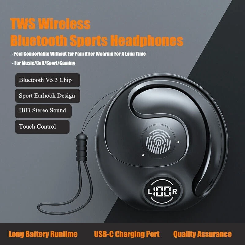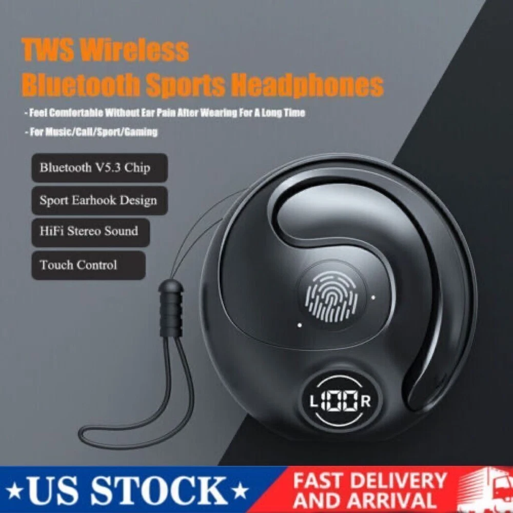 You may also like DUKA 24 in 1 Multi-Purpose Ratchet Screwdriver Bits Set DIY Toolbox C1W6wgza4r3 31.99 USD Free shipping FarDriver ND72450 Controller Bluetooth 48 60 72v to 84v. 200A Battery 450A Phase 188.87 USD Free shipping Hitway H5-H6 Electric Scooter LCD Display with Lock 6-Cell Dashboard Accessories 34.19 USD 35.99 USD Free shipping 5% off Screen Display Replacement for Lectric XP 2.0/3.0 Mountain Bike Electric Scoot3I 55.54 USD Free shipping 5600W 60V 27AH Foldable Electric Scooter Adult Dual Motor 11in Off-Road Tire h87 934.48 USD Free shipping Electric Scooter 48v 800W For Adult 10"Off Road Fat Tires Fast Speed USA MAX vV 421.0 USD Free shipping FEATURES: True wireless earbuds with Bluetooth 5.3 chip, faster transmission and more stable signal. With CVC8.0 intelligent noise reduction technology, you can enjoy HiFi sound effect music or have HD phone talking even in a noisy environment. Built-in high-quality composite diaphragm speaker unit, balanced adjustment technology and finely tuned effects, clear vocals, and more penetrating sound quality with deep bass effect. Ergonomic and innovative ear hook design can provide you long time wearing comfort. The ear hook design make it ideal companion for Sports, Gym, Yoga, jogging; No need to worry about falling off from ears. Low power consumption, long battery life, long standby time is available after fully charged. Take out and auto start up, connect to Bluetooth devices, more convenient to use. The earbuds can be used separately or together, you can choose the mode you like. The earbuds could be used to answer/reject calling, skip/play/pause songs, and activate voice assistant, such as Siri and android voice assistant. With intelligent voice reminder, helping you to know the real-time status of your earphones. IPX grade waterproof level, no need to worry about getting wet by rain and sweat.Great for workout & daily use. SPECIFICATIONS: Bluetooth Version:Bluetooth 5.3 Transmission Distance:10 meters Bluetooth Protocol:HFP/HSP/A2DP/AVRCP Waterproof Level:IPX5 Earbuds Battery Capacity:35mAh Charging Case Battery Capacity:300mAh Charging Time:About 1-2 Hours Playing Time:About 3-4 Hours Connection Method:single/double free to use Function:Music play/pause, call answering noise reduction, IOS power display, voice prompt. Color:Black PACKAGE INCLUDES: 2 x Bluetooth Earphones 1 x Charging Box 1 x Charging Cable 1 x Lanyard 1 x User Manual Brand Unbranded Compatible Brand Universal Connectivity Bluetooth, USB-C Country/Region of Manufacture China Earpiece Double Earpiece Design Ear-hook Features Built-in Microphone, Built-In On/Off Switch, Call functions, Ear Hook, Extra Bass, Noise Cancellation, Rechargeable Battery, Replaceable Ear Tips, Stereo, Surround Sound, Sweat Proof, Volume Control Form Factor Ear-hook Microphone Type Built-In Model TWS Number of Earpieces Double Type ear hook Wireless Range More than 30 ft Wireless Technology Bluetooth Year Manufactured 2024 Manufacturer Warranty 6 Months MPN Does not apply Unit Type Unit Unit Quantity 1 Color Black