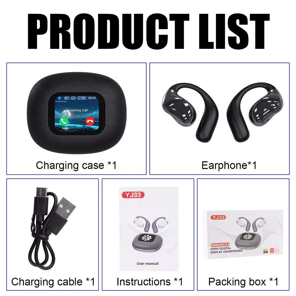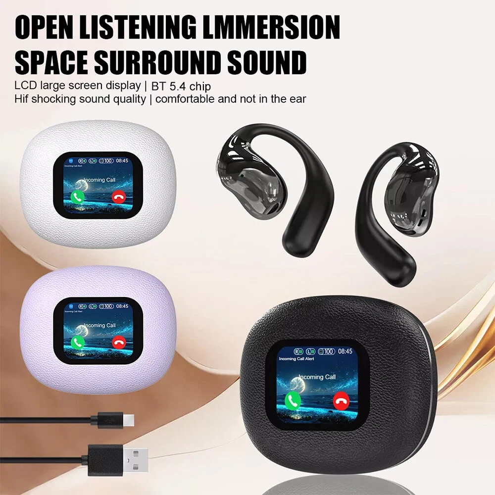 Picture Gallery Description Features: π High quality sound quality, HIFI level. π Comfortable to wear, firm and not falling off, cloud like and skin friendly. π Multi language switching, supporting 20 international mainstream languages. π The screen supports control, synchronization of device time, and operation functions. π The latest design scheme is 5.4 Bluetooth version, with efficient quality assurance. π The charging compartment adopts genuine leather and electroplating technology, which is at the forefront of the latest trend. π LCD screen design and full screen operation effectively enhance the product operation experience. π Large capacity charging case, the earphones can be used for more than 8 hours on a single charge, with long battery life. Specifications: β Product Name: Wireless Earphones β Headphone type: Open type β Chip model: 7003D8+AI β Supporting protocols: HFP/A2DP/HSP/AVRCP β ANC noise reduction: 37 decibels β Speaker specifications: Ξ¦F12mm β Screen size: 2.01 inches β Screen material: LED β Operation mode: Full touch control β Bluetooth version: 5.4 β Transmission distance: β₯ 10 meters (accessible) β Talk time: 8 hours β With charging case: 48 hours β Input voltage: DC5V1A β Charging port: Type-c β Charging time: 2 hours β Battery capacity: 80mAh (earphones) β Battery capacity: 600mAh (charging case) β Product color: Black/White/Skin/Purple (optional) β Product Material: ABS+PC Package List: 2 * Bluetooth earphones (left and right ears) 1 * Type-C cable 1 * User Manual 1 * Charging case Be careful: 1.Due to manual measurement, please allow for a 1cm error! 2. Due to different display resolutions, please consider slight color differences! Shipping Policy Payment Policy Return Policy Shipping Policy 1. We only ship to confirmed PayPal addresses. 2. Economy Shipping, with no tracking number. Standard Shipping, with tracking number. Express (Expedited) Shipping, with tracking number. 3. Economy shipping needs 2-5 weeks to arrive mostly. In rare case, it can take up to 6-8 weeks. It depends on your location and local postal service, as well as the weather condition along the shipping. 4. If you need a faster delivery time, you could choose Express (Expedited) Shipping. If you need a tracking number, you could choose Standard Shipping. Payment Policy We accept PayPal only. We only ship item to your PayPal verified address. Please pay attention that import duties, taxes and charges are not included in the item price or shipping charges. These charges are the buyer's responsibility. Please check with your country's customs office to determine what these additional costs will be prior to bidding/buying. Return Policy 1. We offer 60 day money back or replacement guarantee. In addition, it allows customers to return new and unused products in their original factory condition for any reason within 60 days from the date of purchase. 2. Although we test each item and they are packed professionally, few item (less than 0.1%) might be damaged during the shipping. Please feel free to contact us within 4 days after you receive your package about replacement. 3. If you don't receive items over 35 days, please make sure to contact us before leaving any neutral or negative feedback. We'll try our best to help you solve the problem. If we authorized the return, customers will get an email with instructions for returning the item. Email will be replied within 24 hours on Chinese business hours. On Dec 29, 2024 at 18:52:21 PST, seller added the following information: