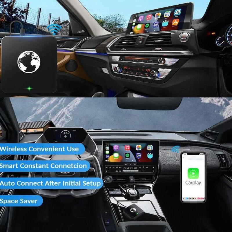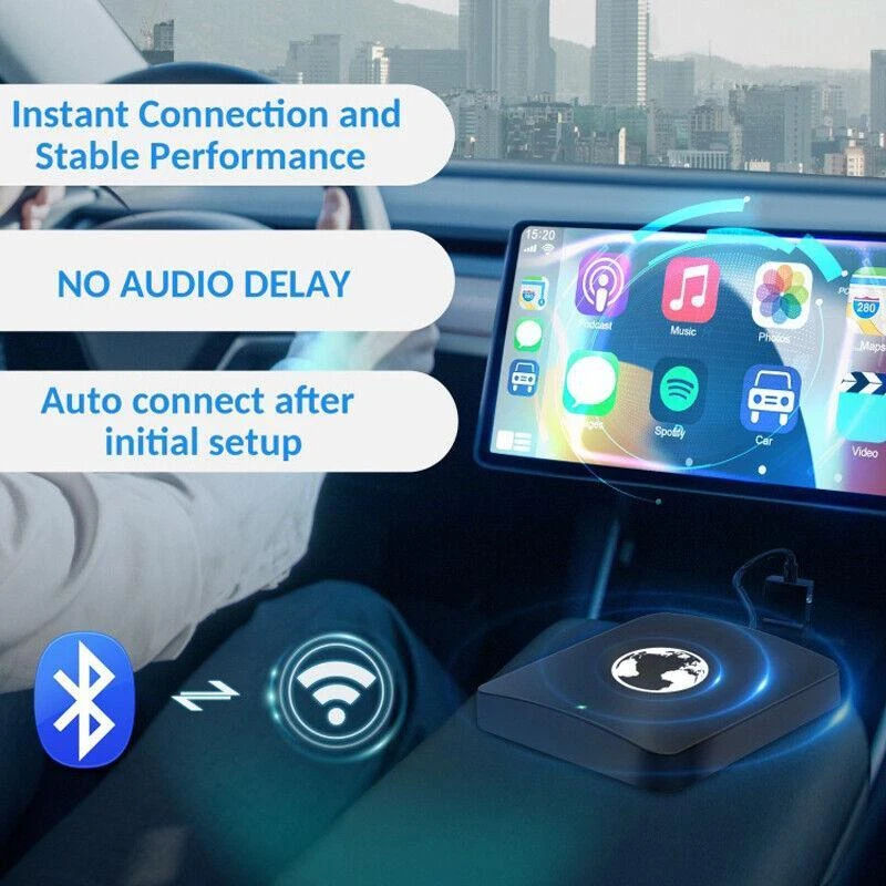 Description Car 5G WIFI Navigation Player Wireless CarPlay Box Bluetooth Dongle Adapter For IOS Product Name: Wireless Carplay Adapter Input DC: 5V 1-2.1A Output DC: 5V 1-2.1A C onnection method: Bluetooth & Wifi Mobile phone: iPhone ISO10 and above Car models: Car models has OEM wired Carplay Package Included: 1 xWireless carplay 1 xType-C data cable 1 x user manual Note: if your car head unit is Android system and wince system, please do not buy. Features: Wireless Connect-this new version USB dongle do not need to connect with your phone date cable, hand free to play carplay. This carplay dongle can get help from your phone, without taking your hand off the wheel. Support Apple system. Control audio playback using voice commands. Apple Car Play makes driving smarter (Tap the icons to take calls, check voicemails and text messages, or bring up maps). And of course, listen to your favorite songs using for iTunes, for Apple Music, or installed apps. Support touch control Support Voice control Listen to music Hand free function Send message function Support GPS navigation HD 1080P displa eBay Cross Border Trade powered by ChannelEffect