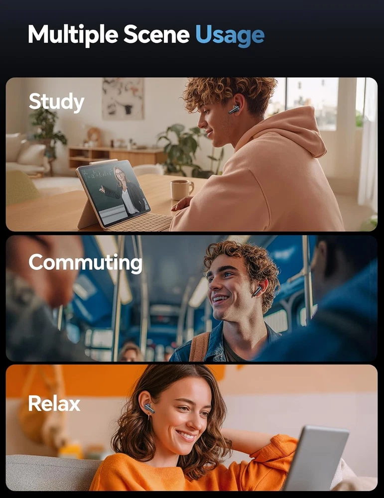 Store New Arrivals Add to Favorite View Feedback Contact Fast deliveries to the customer's home Quality customer service John Make the customers happy! Wireless Bluetooth Earbuds: 5.4 TWS, 13Mm Drivers Hi-Fi Deep Bass, 30H Playtime, Touchscreen Control, Mic for Calls, IPX5 Water-Resistant/Sweatproof, USB-C Charging, Gifts for Teens/Women/Men, Black Description Hi-Fi Sound with Rich Bass and 13mm Drivers: Experience studio-quality audio with DBSONO Wireless Earbuds! The 13mm double-layer diaphragm delivers punchy super bass and clear mids, for music, movies, and video calls. Tuning ensures immersive sound for every genre, during workouts, sports, travel, or relaxing Smart Touchscreen & Bluetooth 5.4 for Effortless Control: The intuitive touch screen lets you manage music, calls, and more with taps. Bluetooth 5.4 ensures ultra-stable, low-latency connections to PC, phones, Pad or TV. The charging case touchscreen is equipped with 9 smart panels (real-time call display, find your earbuds, volume/brightness adjustment, lyrics display) for ultimate convenience 30H Playtime and IPX5 Water Resistant: Enjoy uninterrupted audio with up to 6 hours of playback per charge, plus an additional 24 hours from the 400mAh Type-C charging case (30H total). The IPX5-rated build withstands sweat, rain, and accidental spills, making these earbuds for gym, outdoor running/cycling, travel essentials (airplane/cruise/beach), active gaming sessions, daily commutes All-Day Comfort and Secure Fit: Designed for extended wear, these lightweight earbuds feature an ergonomic shape and come with 3 ear tip sizes (S/M/L) to ensure a fit for all ear sizes. The lanyard lets you hook them to your bag, fasten them to your keys, or drape them over your wrist - keeping them secure and accessible wherever you go. Ideal for exercise, work, commuting, or daily listening Clear Calls and Universal Compatibility: Built-in high-sensitivity mic, designed for clear voice pickup. Great for gaming, meetings, or chatting on-the-go. Universally compatible with Android, iOS and other devices—effortless pairing for everyone. Ideal for birthdays, holidays and special occasions - Suitable for teens, boys, girls, students, professionals, gamers & seniors Product Description 1 Hi-Fi Sound 2 Bluetooth 5.4 TWS 3 Crystal-Clear Calls 4 30h Long Playtime 5 PX5 Water-Resistant 1 for Life on the go 2 Command the Call 3 Power Your Workout 4 Immersive Gaming Audio 5 The Gift of Sound 1 Music Playback 2 Incoming calls 3 Find my Earbuds 4 Take a Photo 5 Pocket Timer 1 Touch Control 2 What's in the Box Why won't my new earbuds charge or turn on? What is the very first step I should take after unboxing? Please remove the protective plastic sticker from the charging contacts on the bottom of each earbud. This film prevents charging during shipping. Once peeled off, place them back into the case and close the lid to activate and begin charging. How do I reset my earbuds to fix connection drops, sync issues, or pairing problems Place the earbuds in the case, hold the on-screen power button for 3s, and select "RESET". Then, go to your phone's Bluetooth settings to "Forget" the "DB T806" device. Finally, remove the earbuds to reconnect them like new. My earbuds won't charge after workouts. How do I fix this and properly care for them to extend their life? Sweat from workouts can corrode the metal charging contacts. After every use, gently wipe the charging points on each earbud with a dry cloth or cotton swab. This simple step prevents oxidation and ensures reliable charging and a longer lifespan. What if my earbuds can connect to my phone, but not to my computer? Switching devices? The earbuds auto-connect to the last one. To connect to your computer, turn off your phone's Bluetooth first to make the earbuds available for pairing. What are the key charging instructions for safety and to maintain long-term battery health? Always dry the earbuds and USB port before charging. Fully charge everything before your first use. To maintain battery health, charge and discharge the set at least once per month. This prevents battery damage from long-term inactivity. Item model number T806 Style Modern Number of Items 1 Controller Type Touch Control Type Touch Control Wireless Communication Technology Bluetooth Age Range (Description) Adult Ear Placement In Ear Impedance 32 Ohm Form Factor In Ear Package Dimensions 4.29 x 3.39 x 1.46 inches Included Components 3 ear caps (S M L), Cable, Type-C Charging Case, User Manual, wireless earbuds Model Name T806 Unit Count 1.0 Count Water Resistance Level Water Resistant Item Weight 0.3 ounces Connectivity Technology Wireless Headphones Jack 3.5 mm Jack Charging Time 1.5 Hours Color Black Compatible Devices Cellphones, Desktops, Gaming Consoles, Laptops, Television Specific Uses For Product Business, Fitness, Gaming Batteries 3 C batteries required. (included) Recommended Uses For Product Calling, Cycling, Exercising, Gaming, Office Meetings, Running Bluetooth Version 5.4 ABOUT US We offer the best prices around on high quality products. Our E-store includes media such as books, movies, music and games while offering electronics, toys, sporting apparel, clothing, tools, general home, garden items and more. SHIPPING We are always working hard to ensure your package arrives as soon as possible. Please understand that some factors like weather, high postal traffic, and the performance of shipping companies are outside of our control. We offer free shipping to the lower 48 states and ship within 2 business days of payment, usually sooner. We do not accept P.O. Boxes. Please provide a physical address. For shipping outside of the continental USA, we only use eBay's Global Shipping Program. The item is shipped to KY and then sent to the rest of the world. International customers are responsible for all duties and taxes. Continue to 'check out' to calculate costs for shipping the item to your country. Messages regarding eBay's Global Shipp