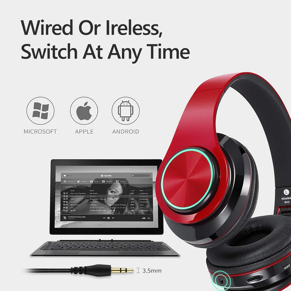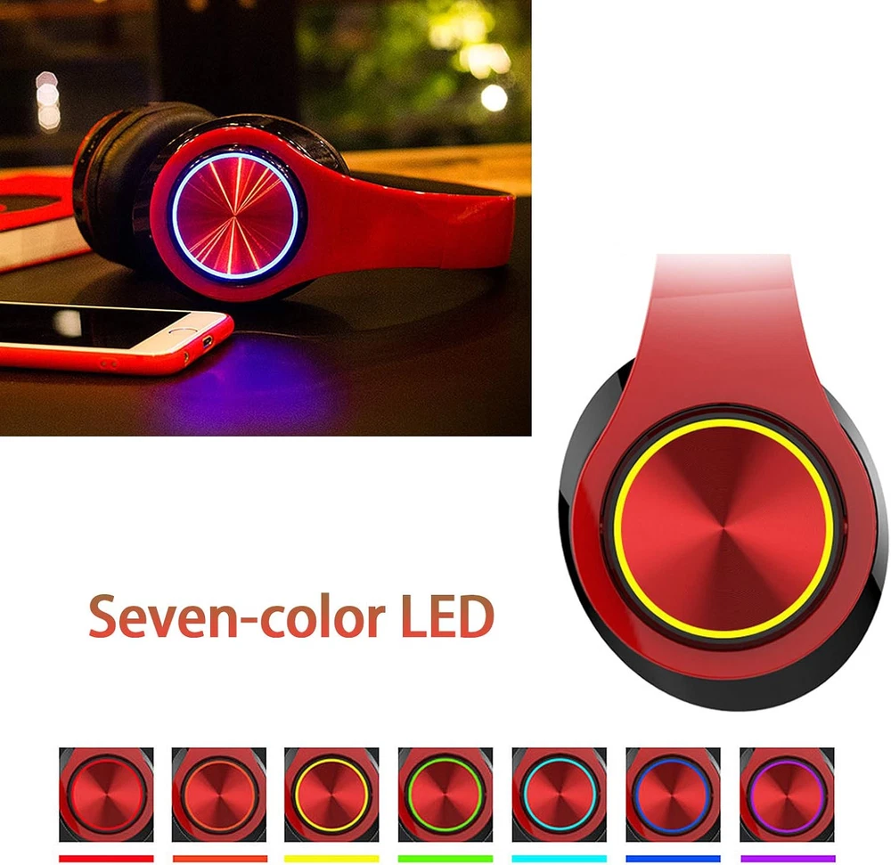 Wireless Bluetooth Headphones with Colorful LED Lights, Built-In Mic, Light Weig