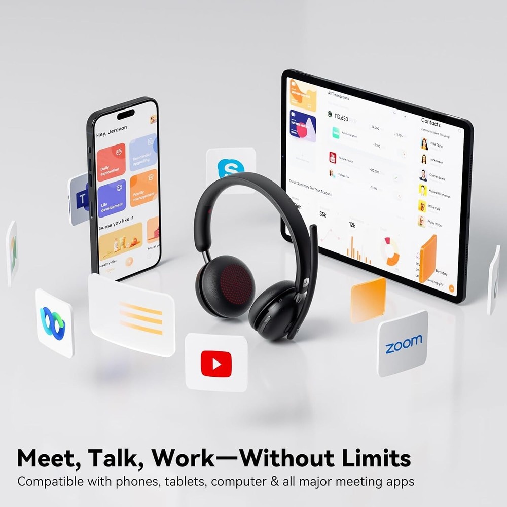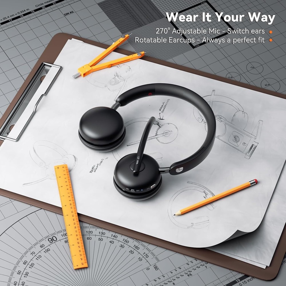 Crystal-Clear Calls Even in Noise: Dytole wireless headset uses advanced noise-canceling microphone technology to effectively filter out distracting background noise - whether it's office chatter, keyboard tapping, or children playing at home. The wireless headset with mic for work is equipped with a 40mm dynamic driver and a high-quality composite diaphragm to make voice details clearer and human voices warmer. It is ideal for customer service, business calls, and remote work 65H Battery & Fast Charging: With up to 65 hours of use on a single charge, the wireless headset with mic is designed for long shifts, back-to-back meetings, and remote work, so you don't have to worry about battery life. Are you in a hurry? Just 5 minutes of quick charge will give you 2 hours of talk time, which doesn't delay your emergency. And our wireless headset with charging base has an intuitive power display, letting you grasp the charging time at any time, and work efficiently Multifunctional Charging Dock: Unlike ordinary charging bases, the base of the wireless headset with mic for work is not only a charger, but also doubles as a mobile phone/tablet stand, so you can operate your device while talking on the phone. When the headset is not in use, it can also cleverly store the headset and USB adapter to make your workspace tidier. Its foldable design is more lightweight and portable, making it an ideal choice for working from home, adding convenience to your work Freer Mobile Experience: Dytole wireless headphones with mic is equipped with Bluetooth 5.3 and 2.4G USB dangle (plug and play), providing flexible connection options for Bluetooth-enabled and non-Bluetooth devices, perfect for computers, laptops, tablets, and mobile phones etc. The wireless headset extended wireless range of up to 15 meters allows you to stay connected at all times when you stretch your body after a long work day or have a cup of coffee, and have a free mobile experience Wide Compatibility & Easy Operation: Our wireless headset with mic for work is compatible with Zoom, Microsoft Teams, Google Meet, and many other mainstream communication platforms, and can be seamlessly integrated into your workflow. Designed for professionals, the wireless headphones with mic can easily answer or hang up a call with just a touch of the MFB button. Need privacy protection? Just press the mute button. A professional bluetooth headset that simplifies every conversation