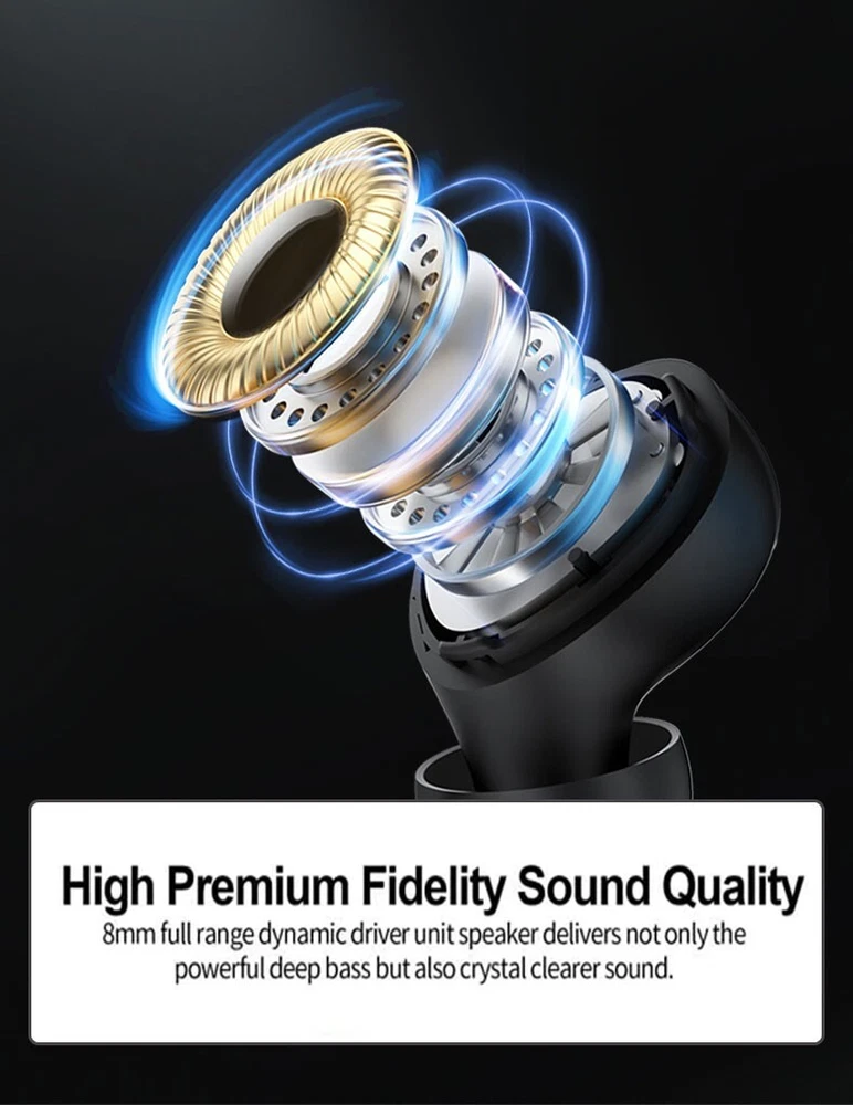 Features: -100% brand new and high-quality made. -Bluetooth 5.3 chip technology and 10mm drivers let you experience crystal clear HD stereo sound and powerful bass. -It comes with charging box, easy to charge. -When you take it out of the charging box and then put it back, the earphones shut down and are recharging. -The headset could automatically power on and match the phone after picked up, eliminating the troublesome operation of manual startup and pairing. -Touch control technology: you can easily play/pause/skip music, answer/end/reject calls or activate voice assistant with simple-tap operating. -The built-in audio processing system eliminates noise and echo very well, making it ideal for listening or watching at work. -It provides you with wireless freedom and provides you with the most comfortable wearing experience. -The earbuds can be used separately or together, you can choose the mode you like. Specification: -Bluetooth version: Bluetooth 5.3 -Working time: About 3.5hours -Working voltage: 3.3V-4.2V -Earbud battery: 30mAh -Charging time: About 70 minutes -Charging case battery: 400mAh -Speaker impedance: F6/320 -Power input: 5V -Frequency response: 20-2DKHZ -Transmission distance: 10m -Color: Black, White, Blue, Purple, Beige. Package: 2 X Wireless Bluetooth Headsets 1 X Charging Box 1 X Type C Charging Cable 2 X Pair of Ear cap 1 X Manual