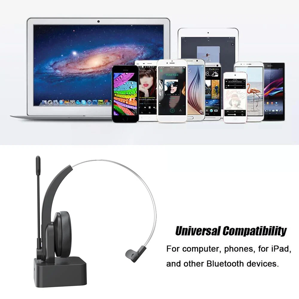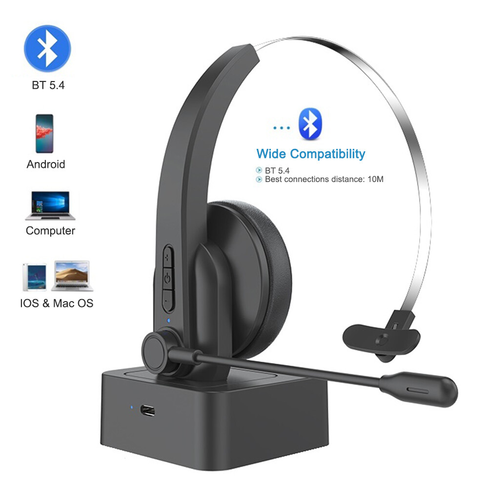 Features: Noise cancellation communication - Bluetooth call center headphones have noise cancellation function, which can keep background noise outdoors and clean up surrounding noise to create clear communication. ● Comfortable to wear - The microphone supports 270 ° rotation. Adjustable headband, suitable for different sizes of heads to wear, even if worn for a long time without feeling fatigue or pain. ● Universal compatibility - This call center Bluetooth headset can connect to computers, phones, desktops, and other devices with Bluetooth devices, achieving clear, stable, and smooth communication without jamming or delay. Charging dock - convenient for headphone storage, headphone charging, can make your computer desktop cleaner and more beautiful. Make it easy for you to work. Long talk time - Type-C fast charging, with a built-in 300mAh lithium battery, can provide you with up to 12 hours of continuous talk time. You don't have to worry about it suddenly losing power. Upgrade Bluetooth - The advanced Bluetooth CSR8615 chip ensures stable and smooth connectivity, providing you with stable and smooth phone calls and excellent customer service. HiFi Sound Quality - Ultimate Experience of HiFi Lossless Music, Realistic and Shocking Sound Quality Experience. Clean and thorough, using PET diaphragm to restore the true original sound. Specifications: *Product Name: Bluetooth Earphones *Headphone type: Head mounted *Bluetooth version: 5.4 *Supporting protocols: A2DP/HSP/AVRCP *Transmission frequency band: 2.4GHz *Transmission distance: 10 meters *Battery capacity: 300mAh *Working hours: 12 hours *Charging time: 2 hours *Input voltage: DC5V 1A *Charging port: Type-c *Frequency response: 20HZ-20KH *Speaker impedance: 2.2 Ω *Speaker diameter: 30mm *Microphone sensitivity: 108db *Speaker output power: 20mW *Compatible systems: iOS/Android/macOS/Windows *Product Material: ABS *Product color: Black Package List: 1 * Bluetooth earphones 1 * User Manual 1 * Base 1 * Type-C cable Tips: 1.Due to manual measurement, please allow for an error of 1-2cm! 2. Due to different display resolutions, please consider slight color differences! On Jan 30, 2025 at 12:07:10 PST, seller added the following information: