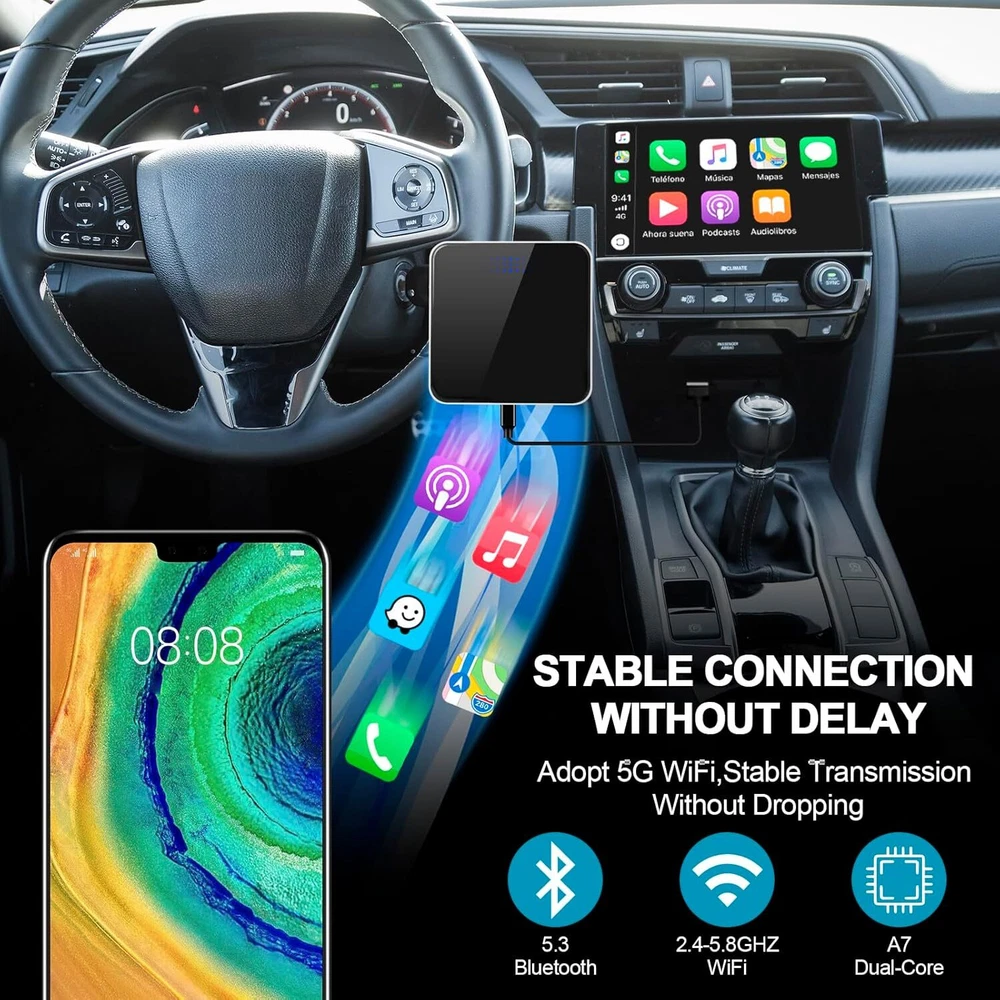 Product Description Wireless Carplay Adapter For Apple: Convert Factory Wired To Wireless Carplay Dongle Cars For Iphone & Android Auto - No Latency For Ios 10+/ Android 11 + Fast Transmission: The 2 In 1 Wireless Carplay Adapter Allows You To Easily Connect To Your Car'S Infotainment System, Enabling Quick Access To Navigation, Music, Siri Assistant, Telephone, And Other Car Functions, Ensuring A Safe And Enjoyable Driving Experience The 2024 Wireless Android Auto Dongle Features An Upgraded Smart Ic Chip And Processor, Enhancing The Wi-Fi Signal And Improving The Heat Dissipation Design. It Solves Disconnection Issues Caused By Prolonged Use, Reduces Noise, And Ensures No Delays When You Play Music Or Make Calls Magic Link Carplay: Enjoy A Stable And Fast Auto-Connect Experience. After The Initial Setup, The Adapter Automatically Activates The Carplay Wireless Connection Every Time You Start Your Vehicle. There'S No Need To Plug In Your Phone; It Works Even If Your Cell Phone Is In Your Pocket. Stay On Top Of Your Driving With Support For The Original Car Operating Mode, Including Touchscreens, Buttons, Steering Wheel Controls, And More Universal Compatibility: Our Auto-Connect Adapter Is Designed For All Factory-Wired Cars, Seamlessly Converting Wired Carplay To Wireless Carplay And Wired Android Auto To Wireless Android Auto. It Includes A Usb-To-Usb-C Cable And Offers Wireless Control With Plug & Play Convenience For Cars From 2017 Models And Later, As Well As Compatibility For Apple Iphone Ios 10+ And Android Auto 11+ User-Friendly Interface: The Easy Link Carplay Adapter Offers An Intuitive Setup And Operation Experience. Its Simple Pairing Process Allows You To Effortlessly Add Apple Carplay Functionality To Any Car, Enabling You To Start Using The Adapter Immediately About Us We are a reputable seller with many years of experience selling on eBay. Our goal is to provide high-quality products and excellent customer service. Payment 1.We accept PayPal only. 2.All major credit cards are accepted through secure payment processor PayPal. 3.Payment must be received within 7 business days of auction closing. 4.We ship to your eBay or Paypal address. Please make sure your eBay and Paypal address is correct before you pay. Feedback will be left automatically after we receive your feedback. Please contact us before leaving a Negative feedback or Neutral feedback. We would try our best to help you solving any problem. Shipping Items will be shipped within 1-3 business days when we received payment. (Orders are not processed on weekends & holidays) Tracking information will be sent once item is shipped. Delivery time depends on destination and other factors Item is shipped to ebay address. Leaving correct address can minimize delay. For international shipping and shipping to Guam, Hawaii and Alaska, Please contact us before placing the order. International buyers please note: Import duties, taxes and charges are not included in the item price or shipping charges. These charges are buyer’s responsibility. We will try our best to reduce the risk of the custom duties. Local pick-up is unavailable at the moment. Returns For any issues with Defects, Return, Item Exchange request, please contact us first and send us a message first before opening any type of case or request. We devote ourselves making EVERY CUSTOMER in 100% Satisfactory and resolve any problem. We highly value and appreciate your business. Thank you. No returns will be accepted without an RMA number. Please contact us for the RMA number. Return is acceptable within 30 days of delivery. Return for replacement or money back is optional. Returned items must be in the brand new, unaltered and resalable condition. Seller is not responsible for any labor cost, expense in a dealer store, or damage due to wrong installation. Contact Us We reply any email messages within 1 business / working days(off-duty at weekend). If you do not get a response from us, then please check your junk or spam mailbox. Our Business hours: Mon-Fri 9:00-18:00, UTC/GMT +8 hours. Please contact us either by clicking "contact seller" in the "purchase history" section or simply click "ask a question" at the bottom of this page. If you are unsatisfied with our item or service, please contact us before leaving any feedback. We are committed to resolve all issues in a friendly and satisfactory manner. powered by